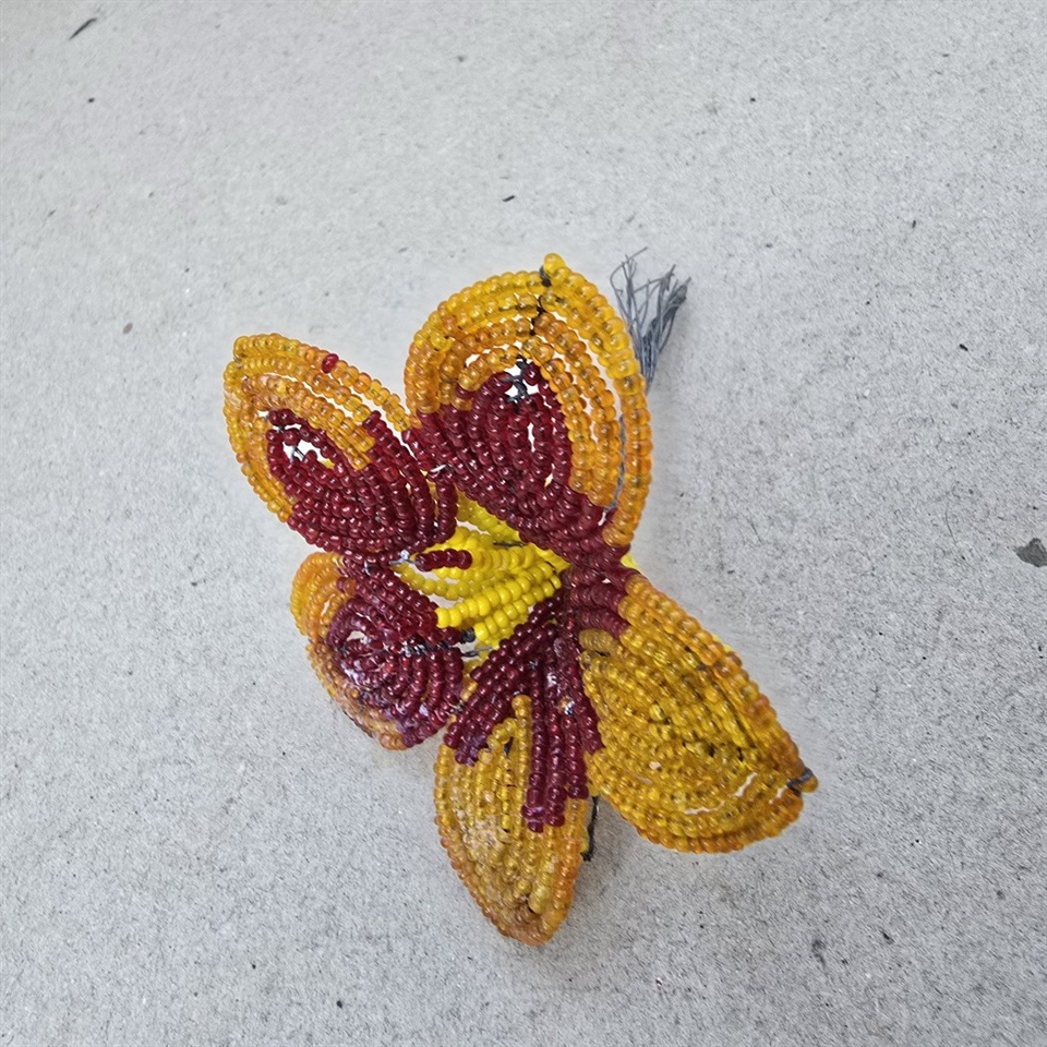 Opdag den fortryllende skønhed af 'Glasperleblomst, orange, rød gammel fantastisk fransk blomst' – en ægte perle i enhver blomsterentusiasts samling!