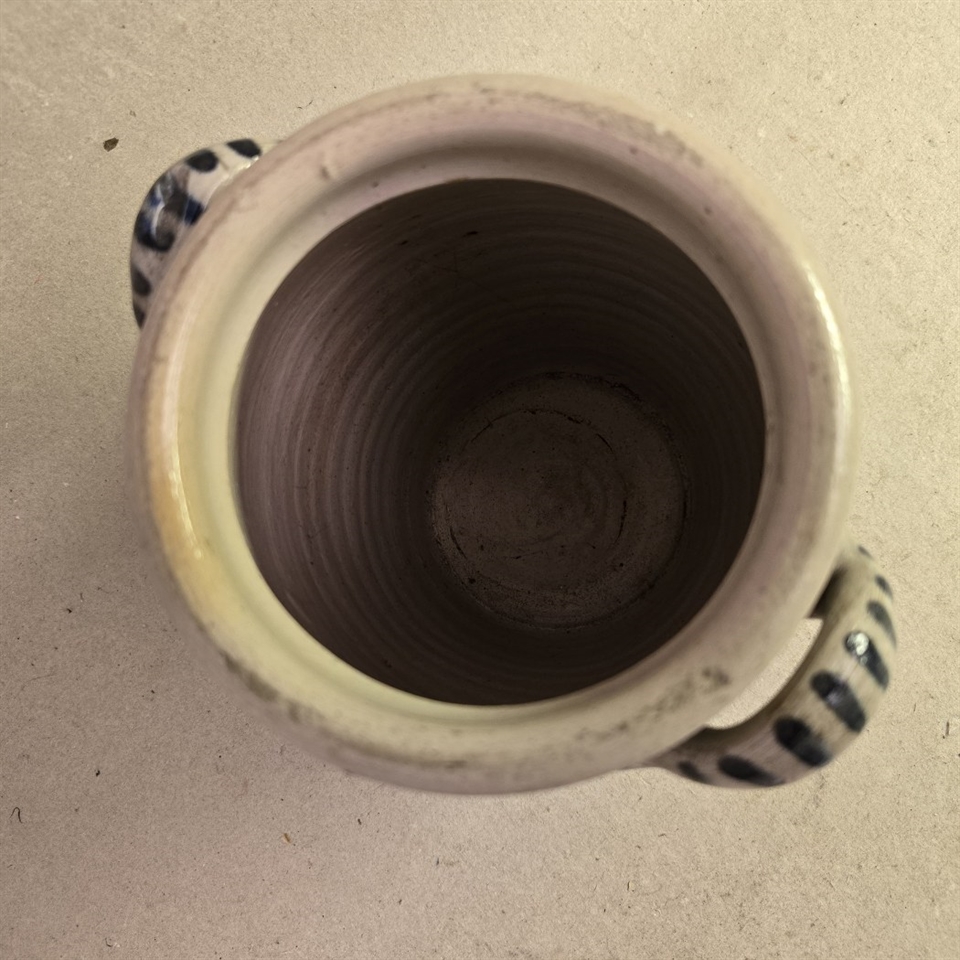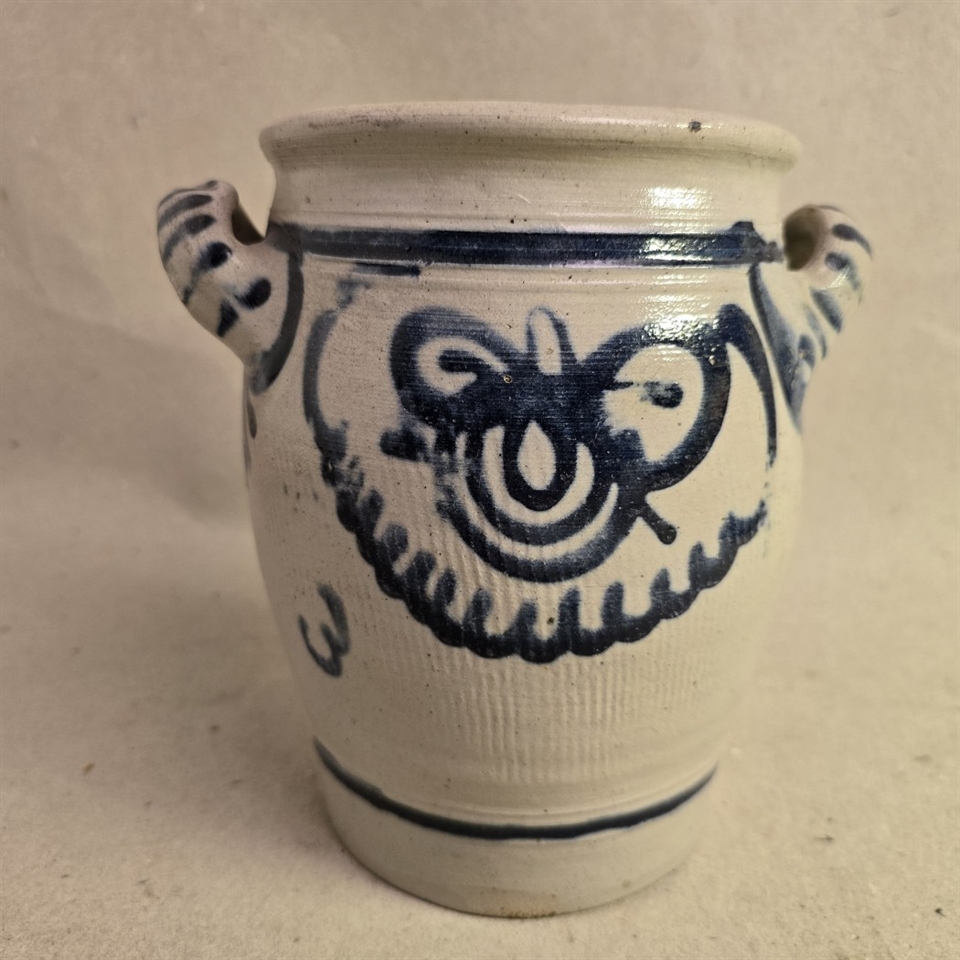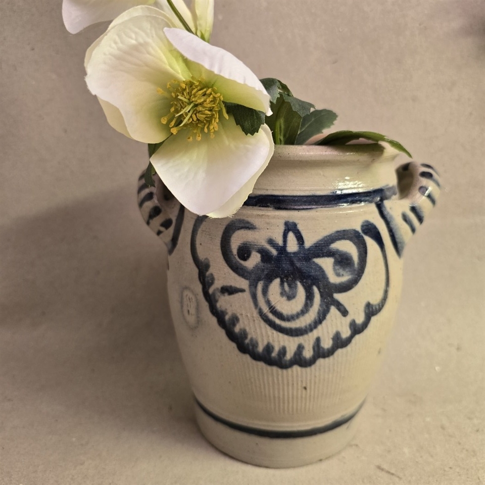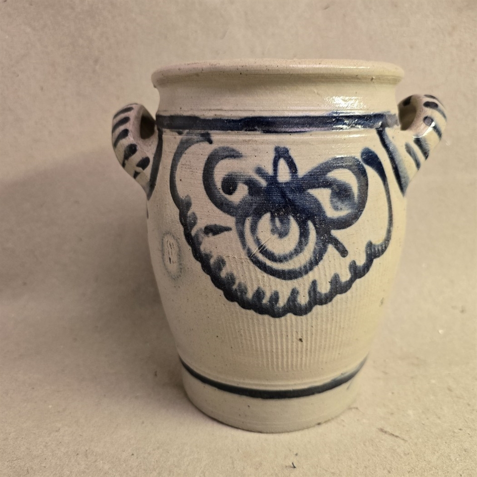 Opdag charmen ved traditionel dansk køkkenkunst med vores 'Grå, blå stentøjs syltekrukke' - et must-have for enhver, der værdsætter autentisk og stilfuld opbevaring. Denne smukt designede syltekrukke kombinerer funktionalitet med æstetik og bringer et strejf af gammeldags hygge ind i dit køkken.