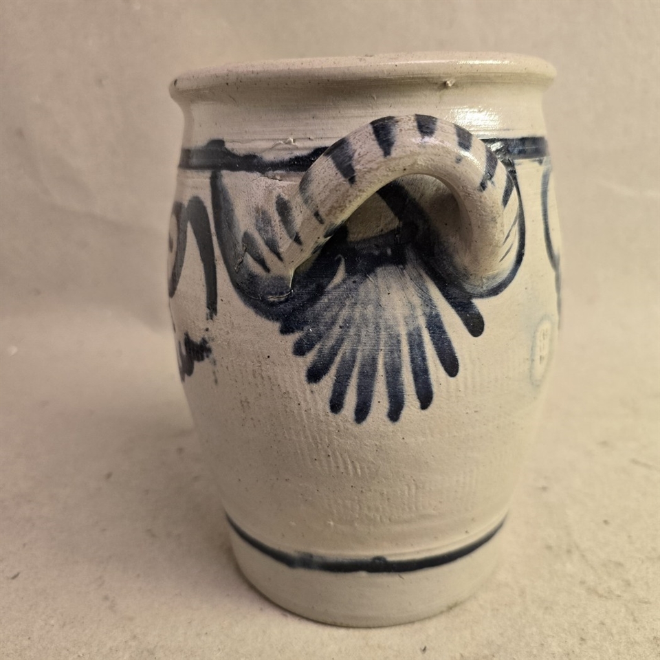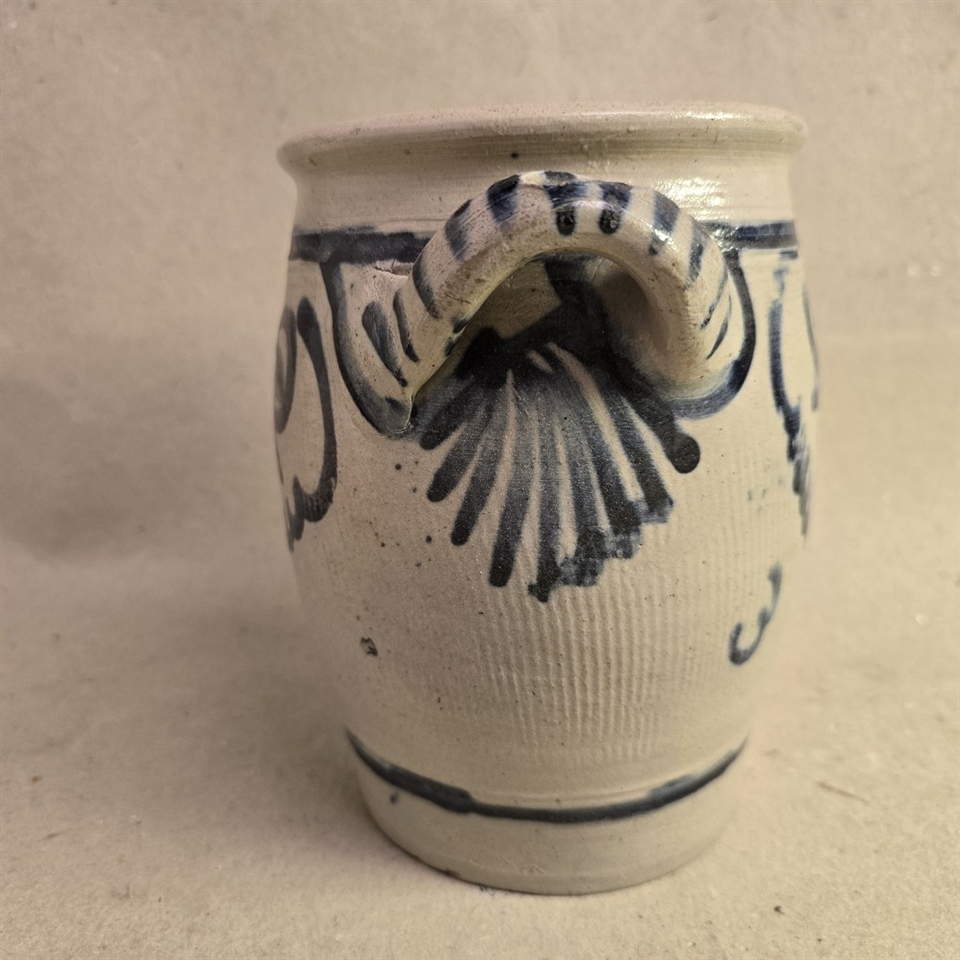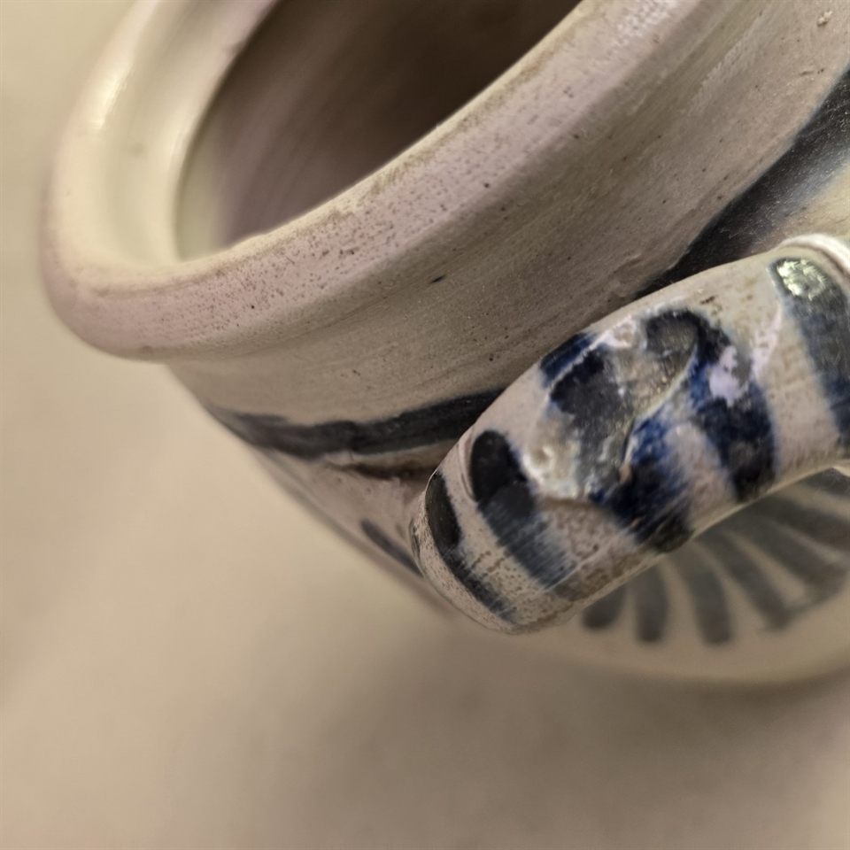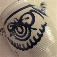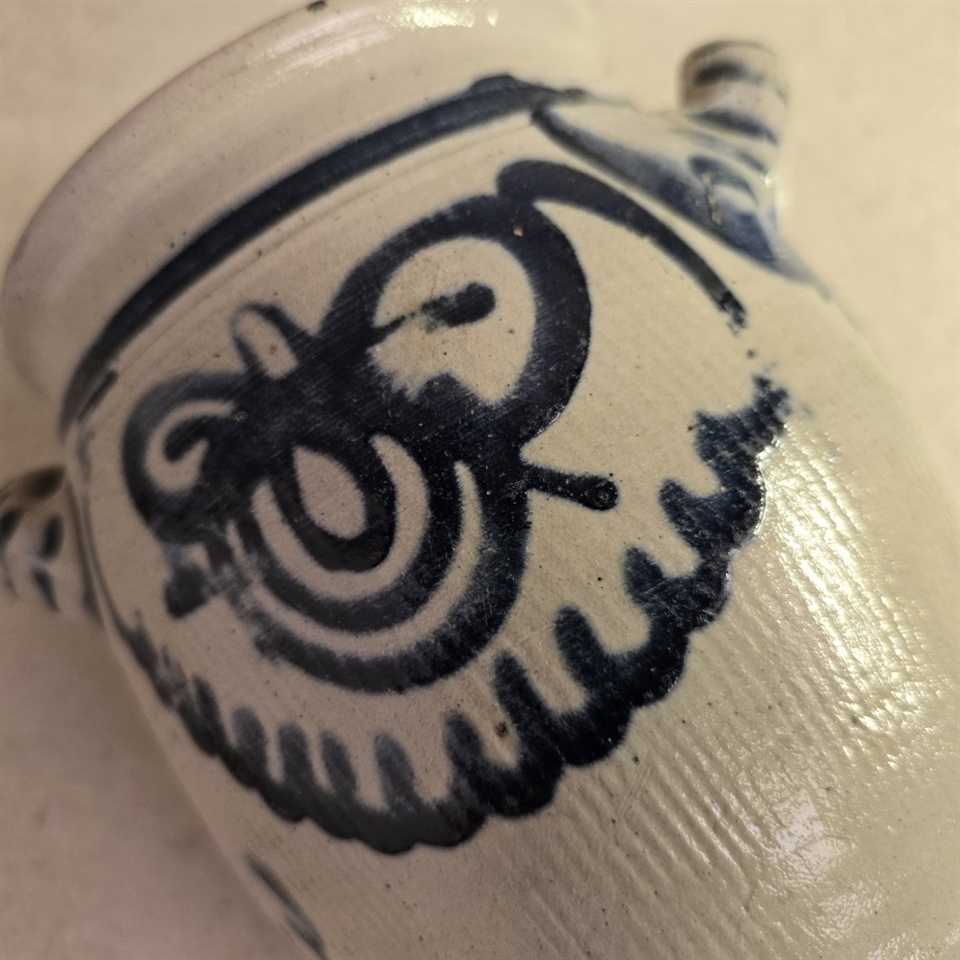 Opdag charmen ved traditionel dansk køkkenkunst med vores 'Grå, blå stentøjs syltekrukke' - et must-have for enhver, der værdsætter autentisk og stilfuld opbevaring. Denne smukt designede syltekrukke kombinerer funktionalitet med æstetik og bringer et strejf af gammeldags hygge ind i dit køkken.