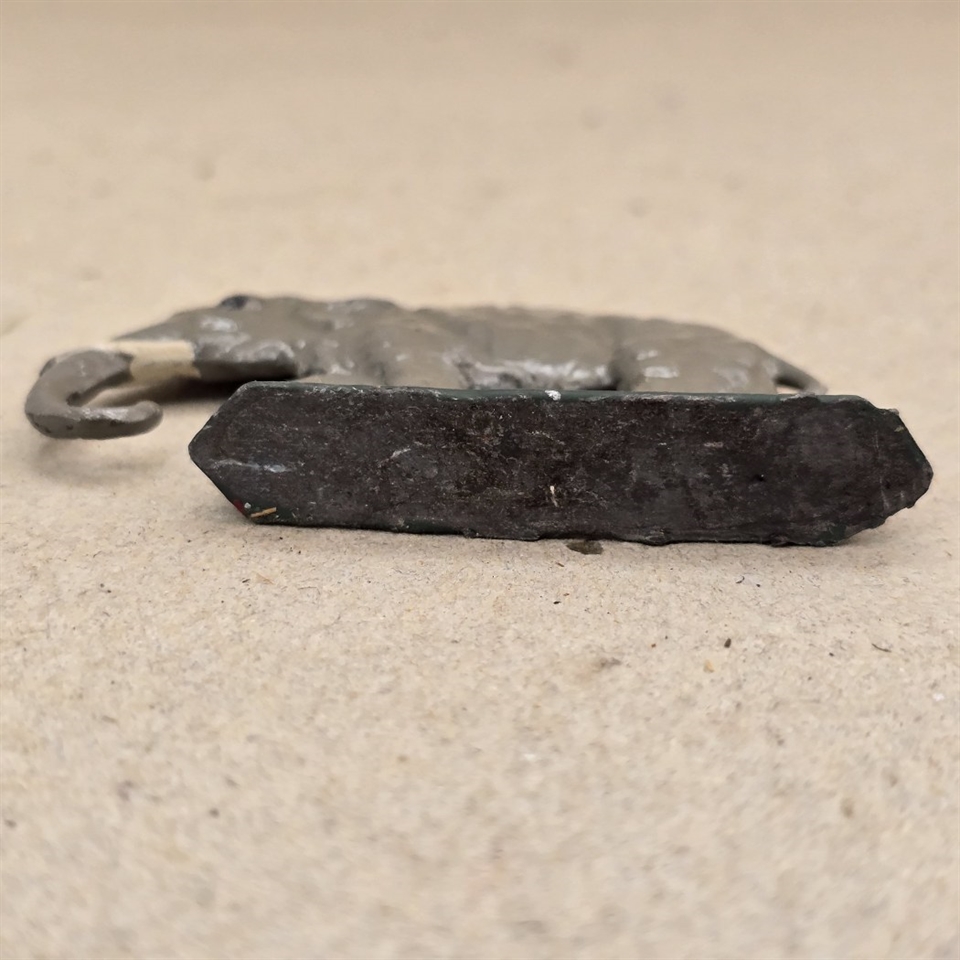 Vores charmerende grå metal elefant måler 5,8 cm. i højden. Den skiller sig ud med sine store, hvide stødtænder, der tilføjer et flot visuelt element til dens robuste metalstruktur. Med sin klassiske grå farve og nostalgiske design, vil denne elefant uden tvivl blive et samtaleemne, uanset hvor du placerer den.