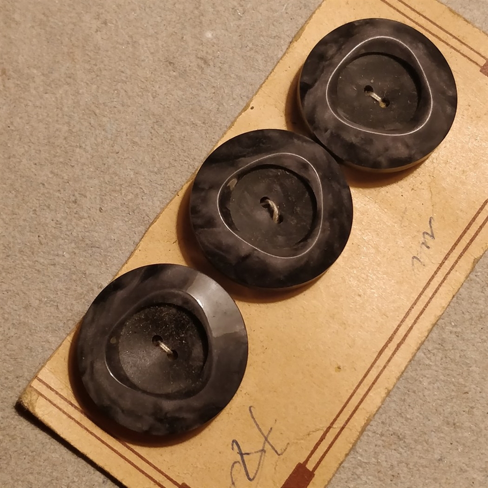 Opgrader dit håndarbejde eller tøj med et strejf af vintage charme med disse unikke gråmelerede retro knapper i plastik, direkte importeret fra Paris.