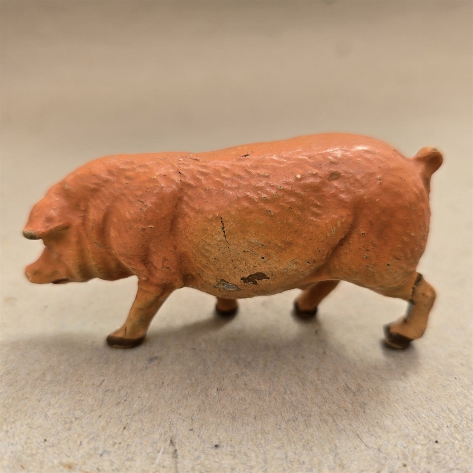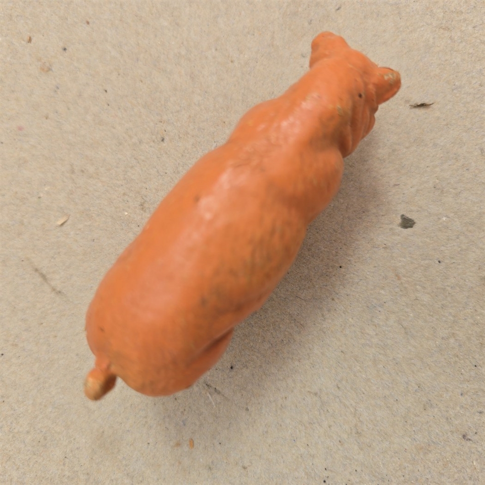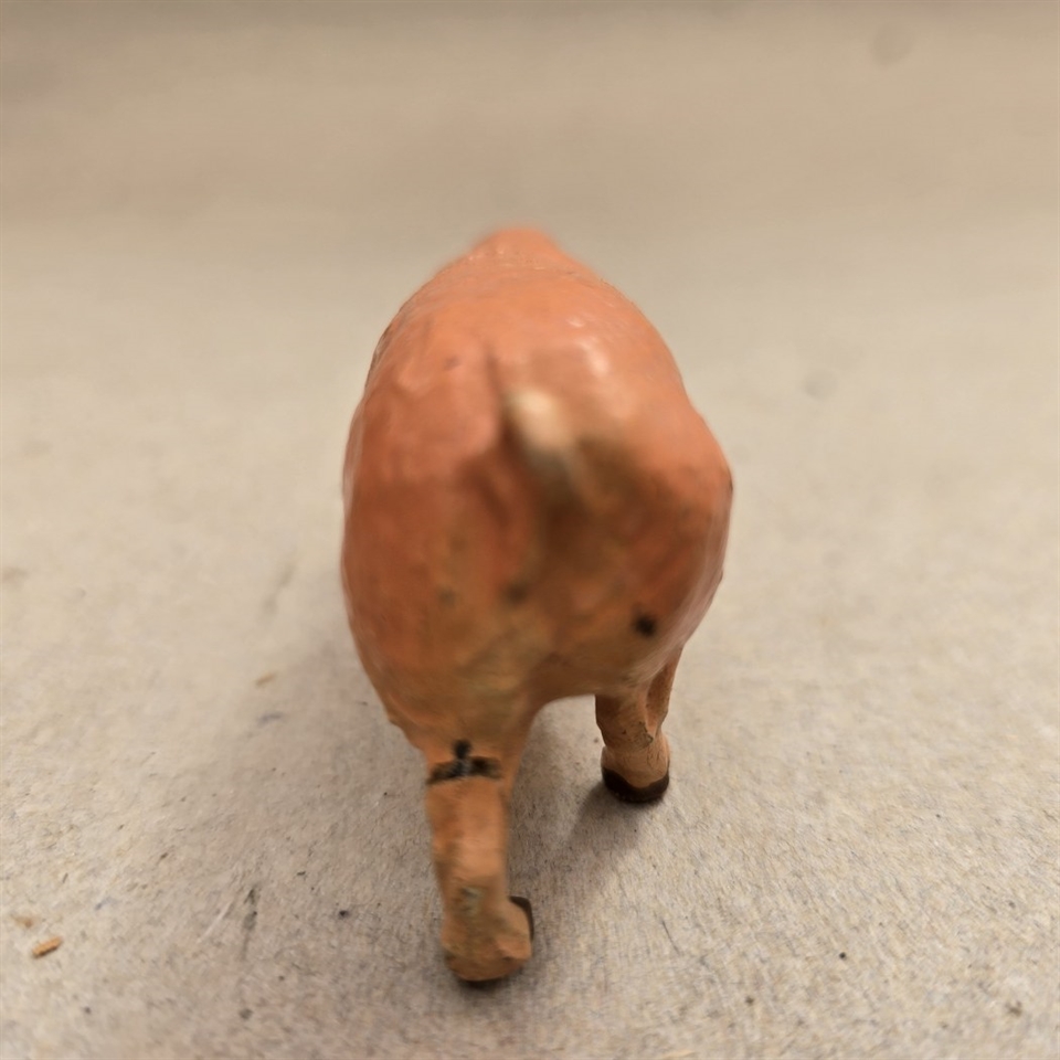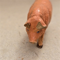 Denne smukt patinerede legetøjsgris, der måler 8,3 cm. i længden, er fremstillet i en tid, hvor hvert stykke legetøj var håndlavet med omhu og kærlighed.