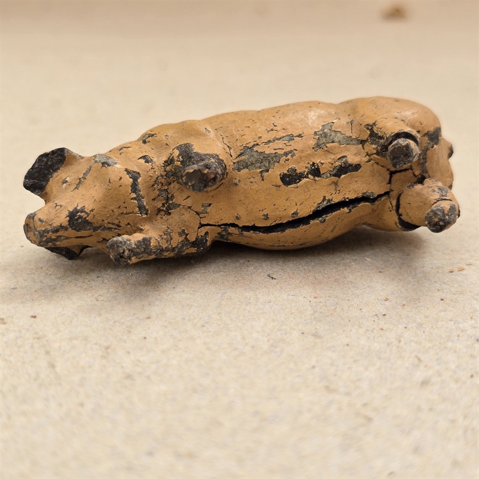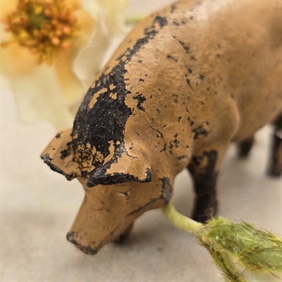 Opdag charmen af nostalgi med vores "Grisefarvet Gris, Gammelt Stykke Legetøj"! Denne yndige lille gris er mere end bare et stykke legetøj; det er et strejf af barndommens magi, gemt i 8 cm. af kærlighed og historie.