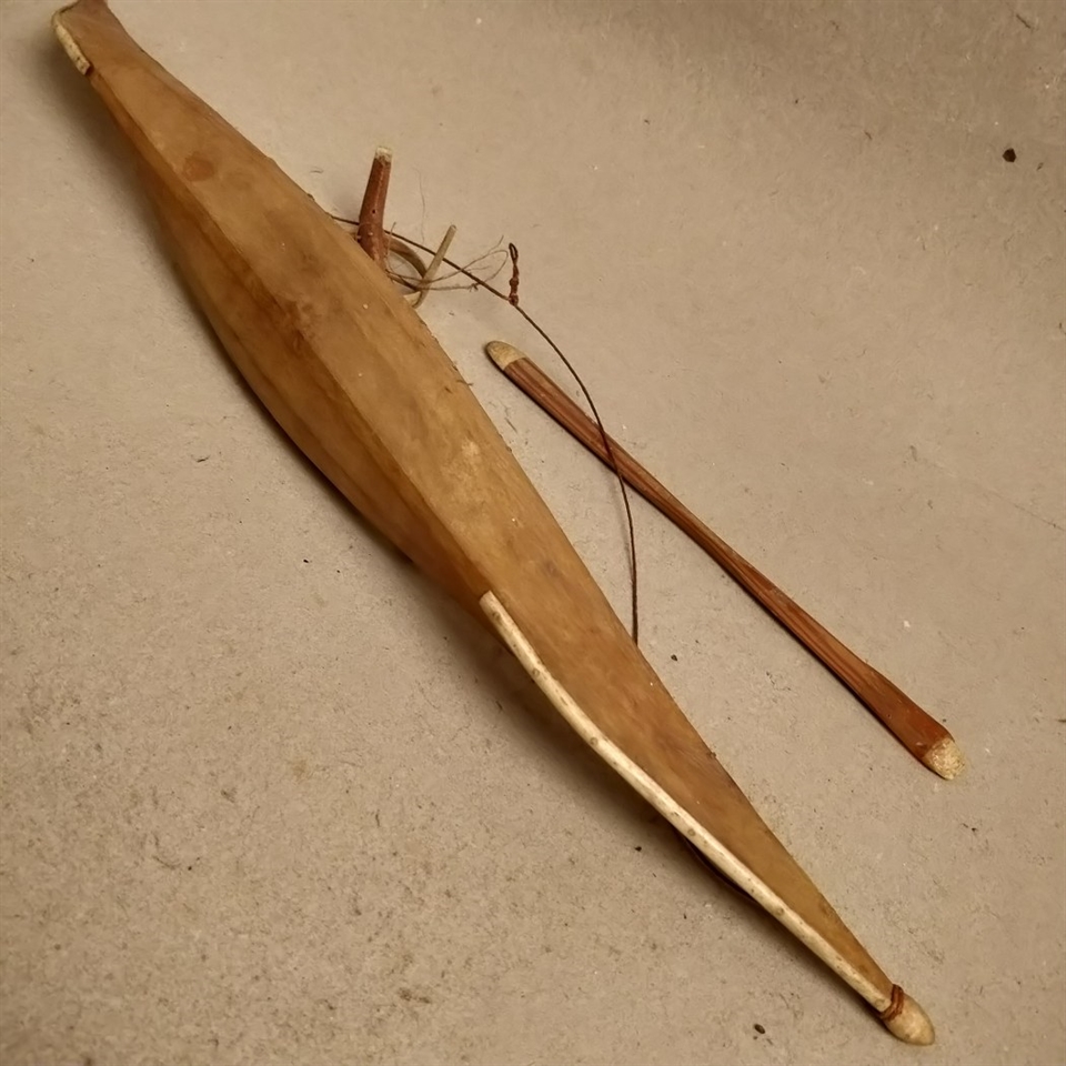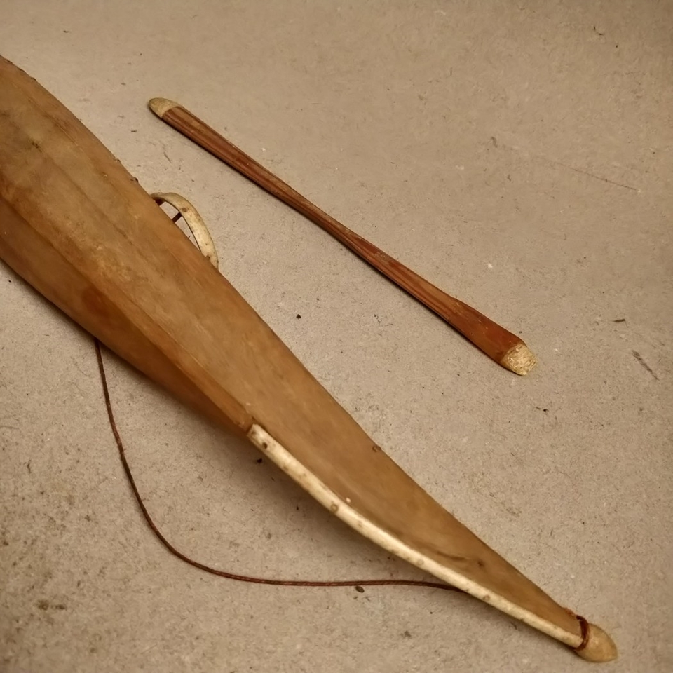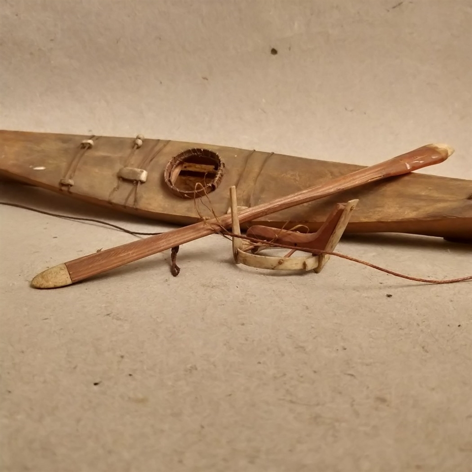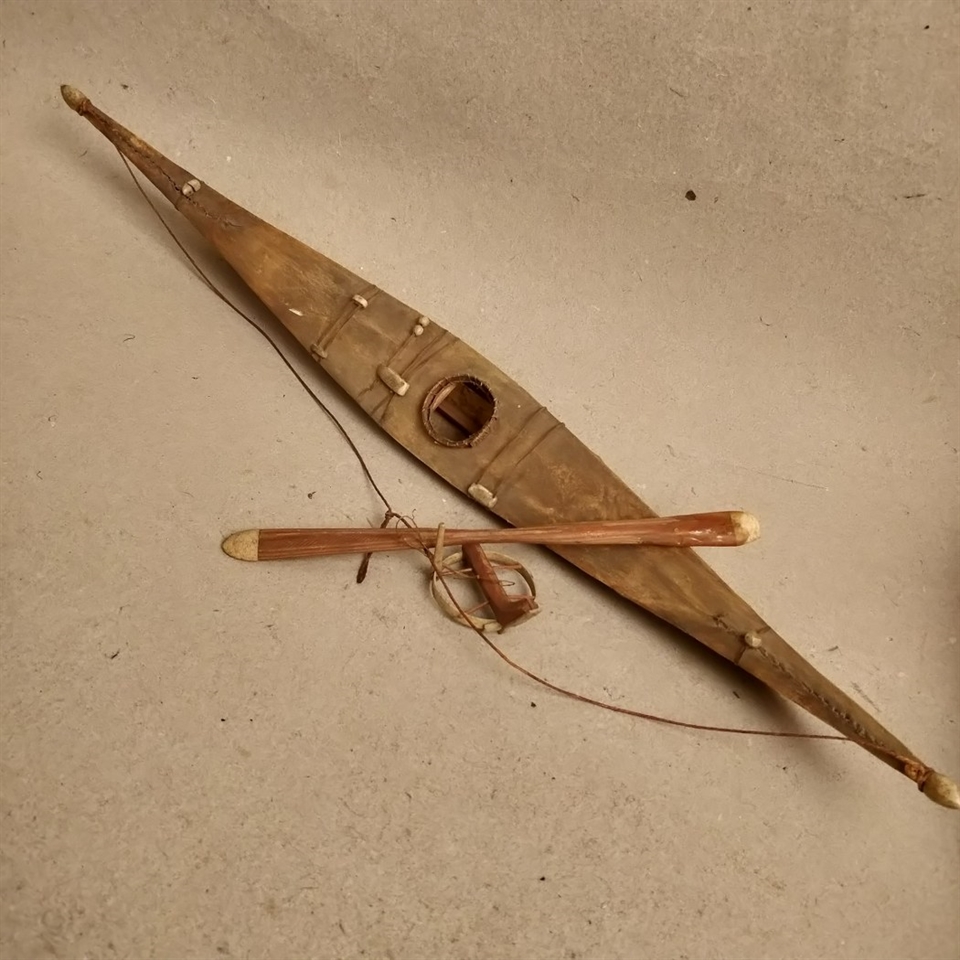 Grønlænder kajaken er omhyggeligt håndlavet af naturlige materialer, og dens detaljer og håndværk er et vidnesbyrd om den grønlandske kajakbygningstradition.