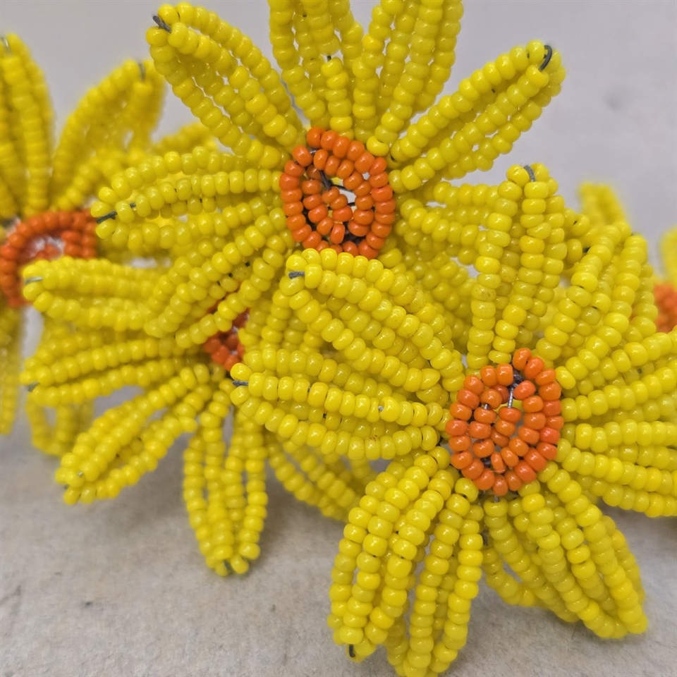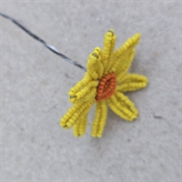 Denne perleblomst, med sin strålende gule farve og en iøjnefaldende orange kerne, måler 4,2 cm. i diameter og varierer i længde fra 5. til 12 cm., hvilket gør hver enkelt blomst unik.