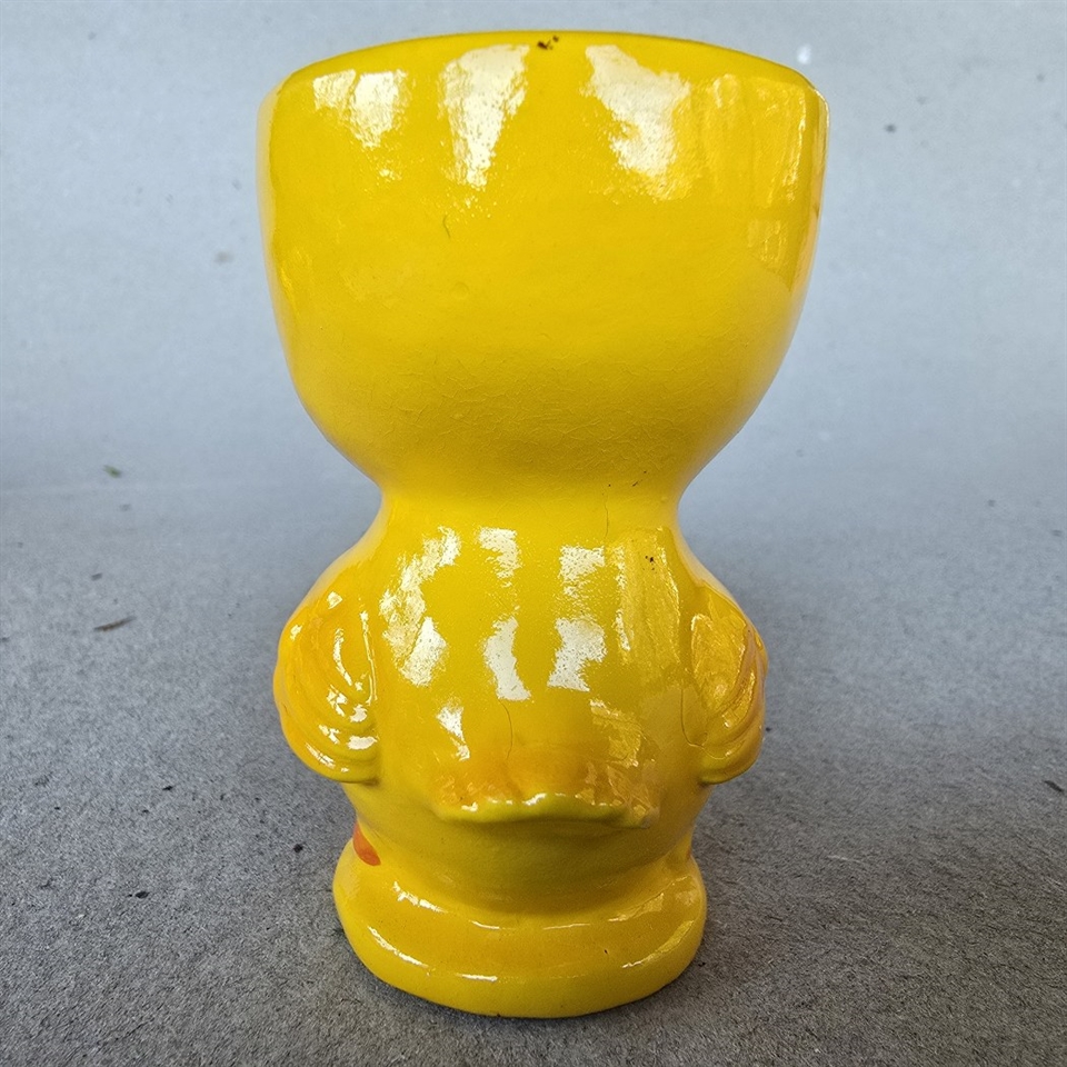 Integrér et stykke historisk charme i din dagligdag med dette indbydende og dekorative 'Gul kylling med rød butterfly retro æggebæger'.