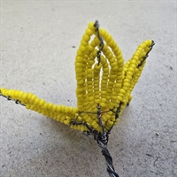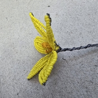 Håndlavet med kærlighed og ekstraordinær finesse, denne unikke blomst er sammensat af fine glasperler, arrangeret smukt i fem strålende blade med en levende gul og orange farvekombination, der fanger øjet og varmer hjertet.