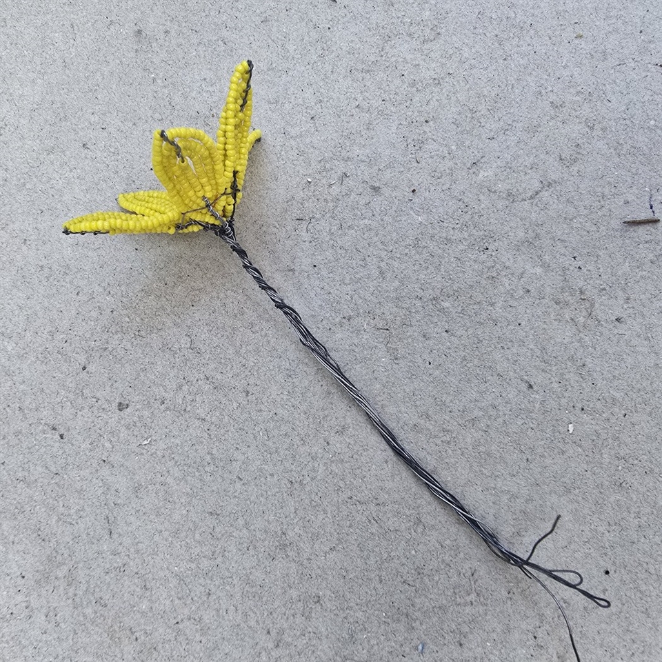 Blomsten er omhyggeligt kreeret og vidner om det traditionelle håndværk og den historie, der lever videre i hver enkelt perle.