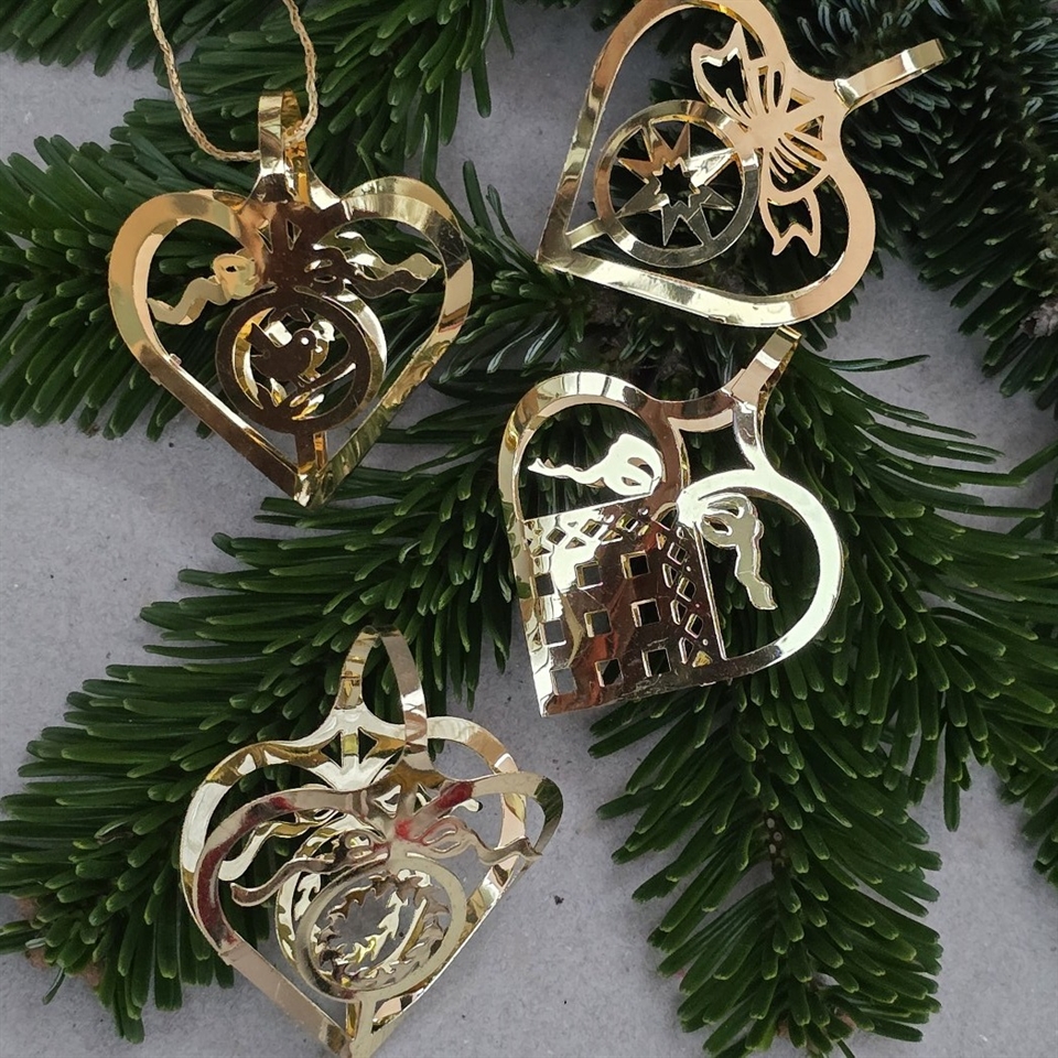 Gør julen ekstra speciel i år ved at hænge disse vidunderlige retro julehjerter på dit træ, og nyd hvordan de elegante guldtoner komplementerer det traditionelle julelys.
