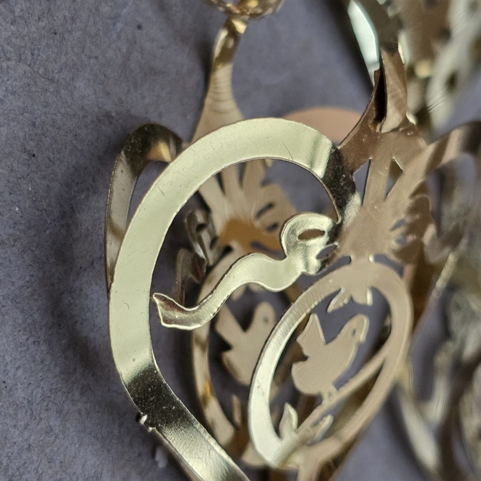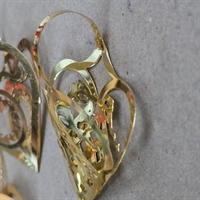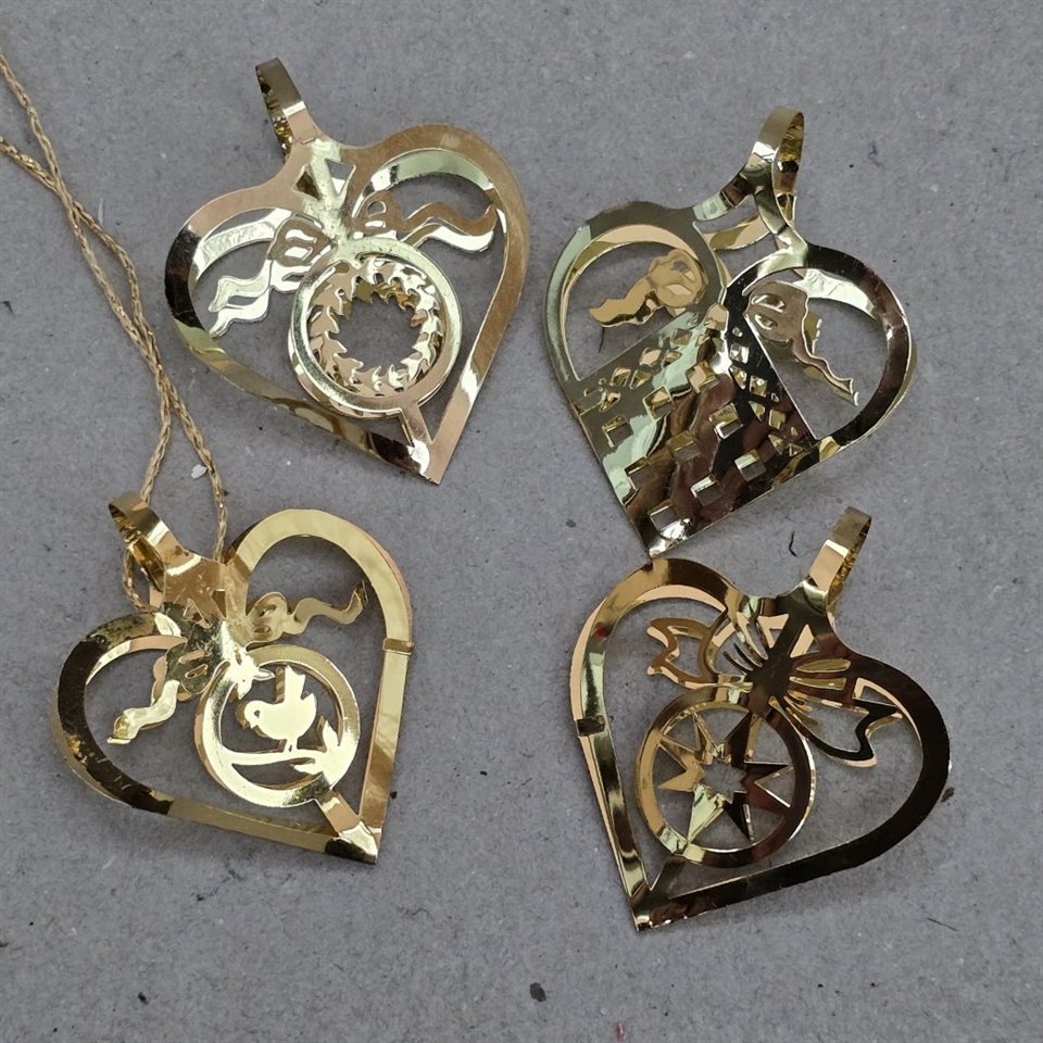 Disse smukke hjerter er udført i skinnende guldfolie og prydet med forskellige indviklede mønstre, der fanger lyset og skaber en varm, indbydende atmosfære.