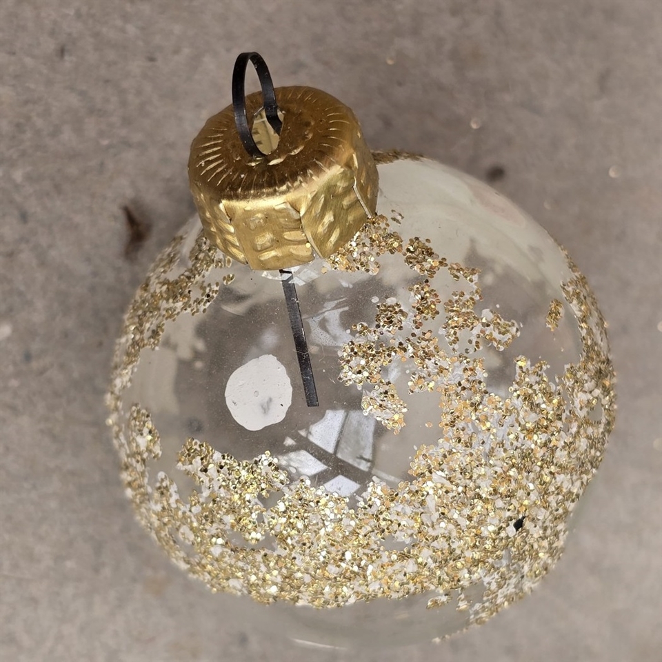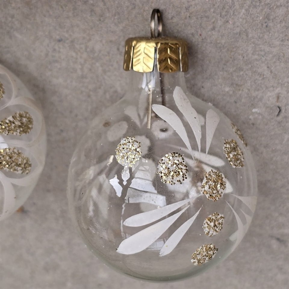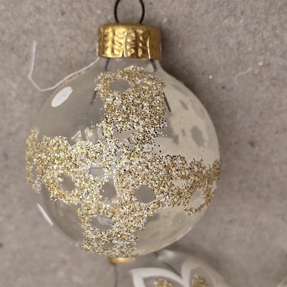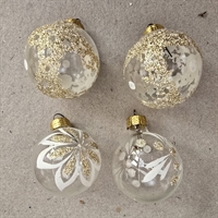 Hver kugle er udsøgt dekoreret med guld- og hvide detaljer, der tilføjer et klassisk, men stadig moderne præg til din julepynt. Det nostalgiske design giver minder om barndommens jul, mens det klare glas sikrer, at de smukt komplementerer enhver juletræsdekoration, uanset farveskema eller stil.