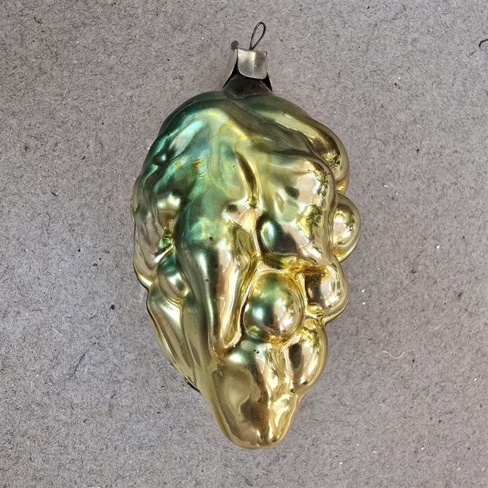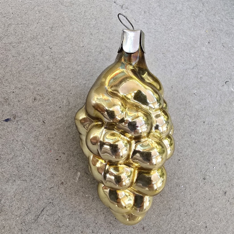 Opdag magien ved en traditionel russisk jul med vores charmerende 'Guldfarvet drueklase, gammel russisk glas julekugle'. Denne unikke julekugle bringer et strejf af glans og nostalgi til dit juletræ med sin smukke guldfarvede drueklase og livlige grønne blad.