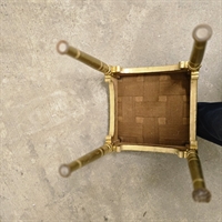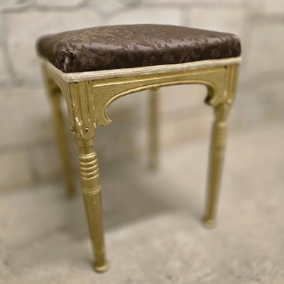 Opdag elegancen med vores eksklusive 'Guldfarvet vintage taburet med brun silkeagtig polstring'.