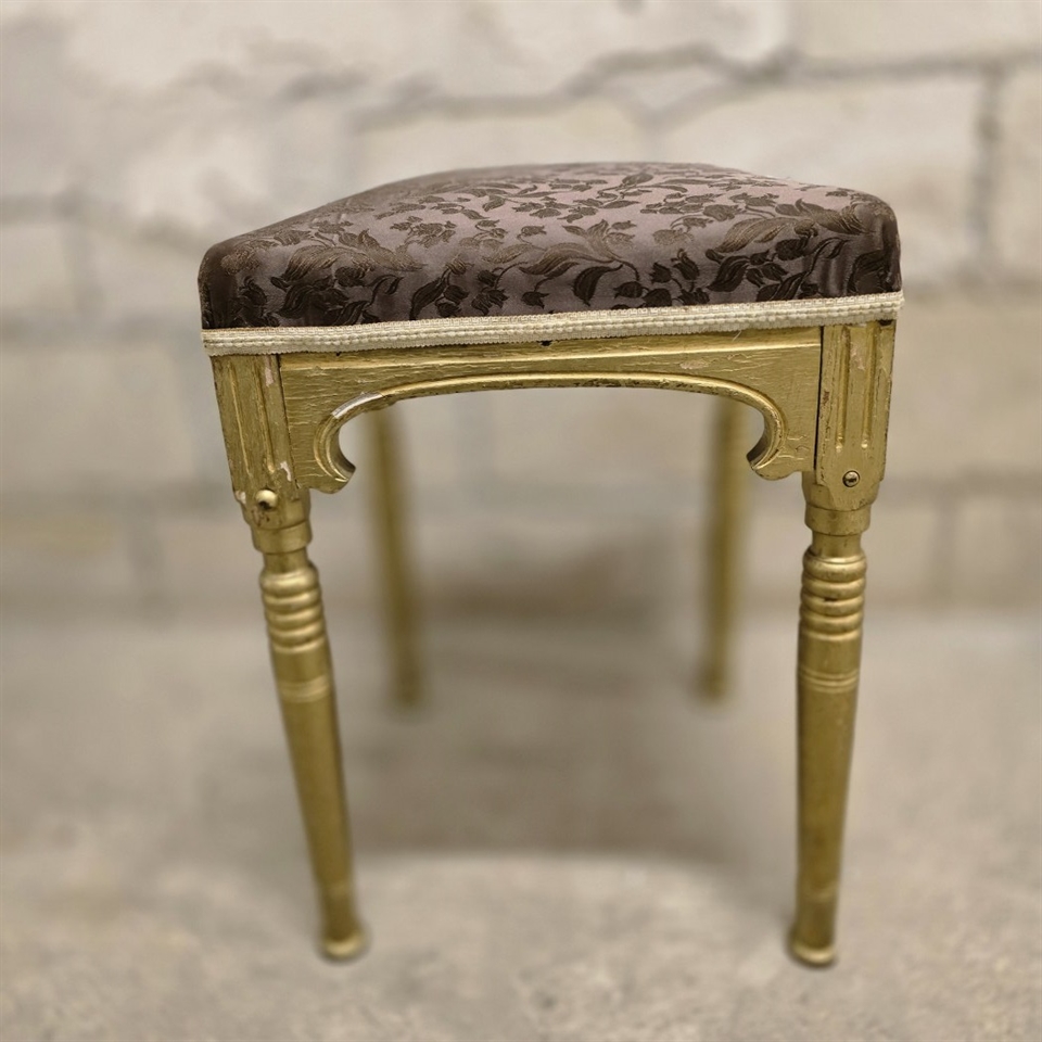 Placer denne guldfarvede vintage taburet med patineret maling, i dit hjem og lad den tilføre et element af grandeur og historisk elegance.