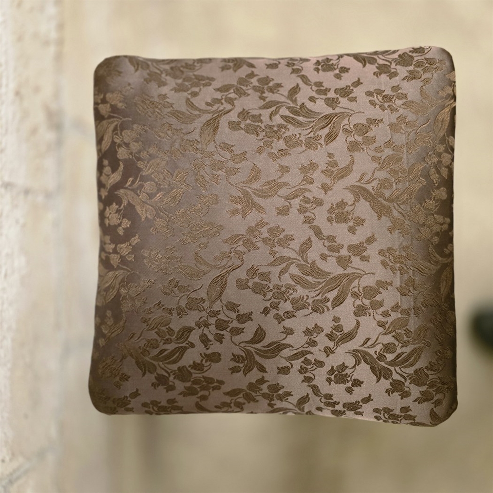 Taburettens struktur er håndmalet i en guldfarve, der tilfører et strejf af glamour og luksus. Overfladen er polstret med et dybt brun silkeagtigt stof, der lover ikke kun ubeskrivelig komfort, men også en visuel glæde.