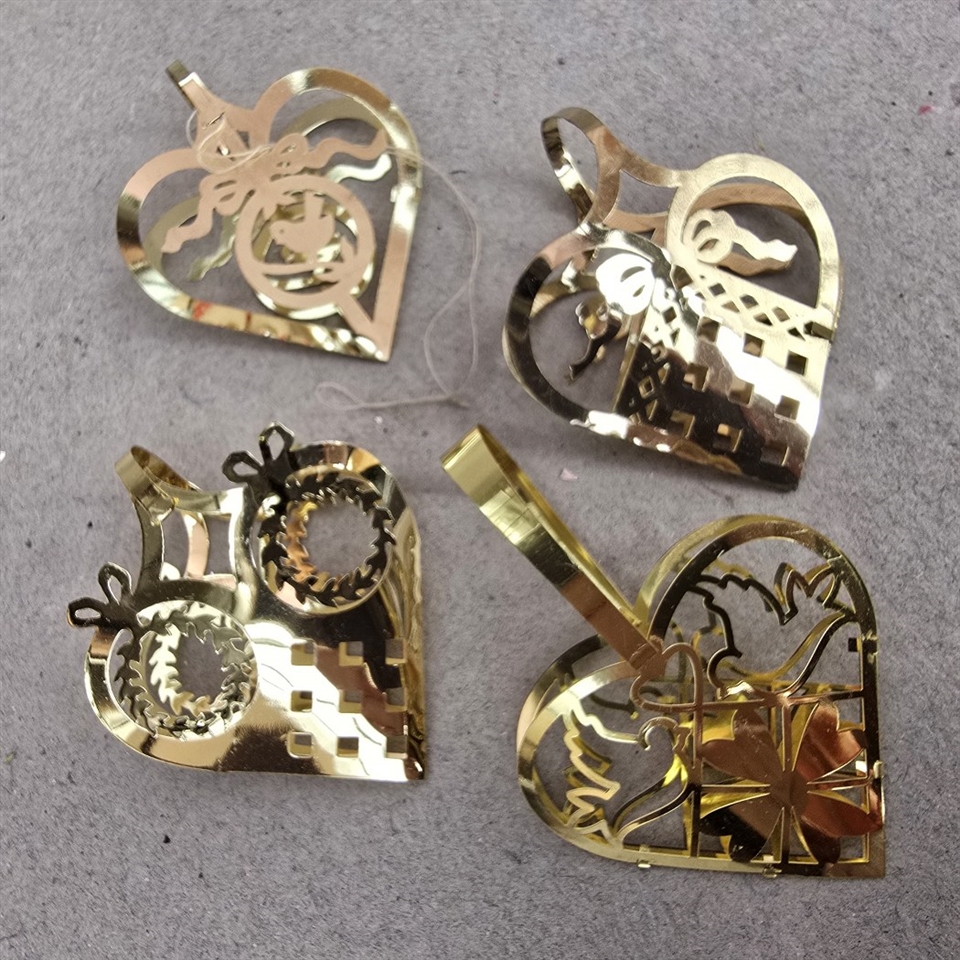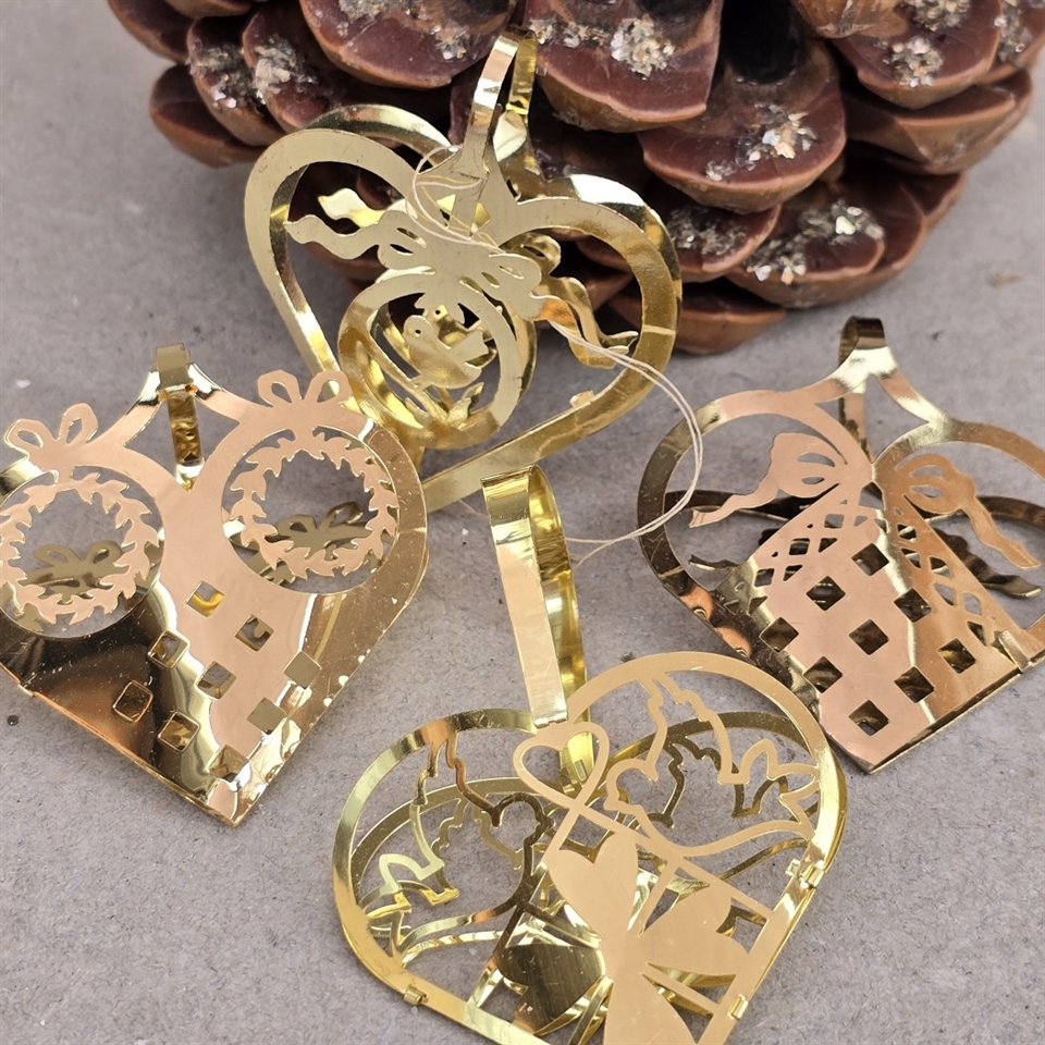 Vores 'Guldfolie hjerter til dit juletræ' sæt består af 4 skinnende hjerter, der vil bringe en varm, gylden glød til din juledekoration.
