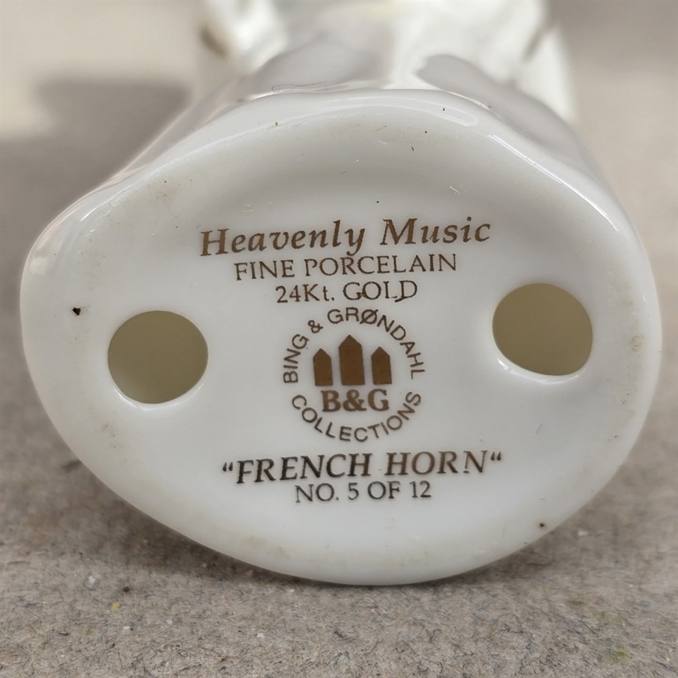 Opdag den himmelske skønhed med "Guldvinger på french horn spillende hvid engel" fra Bing & Grøndahl!