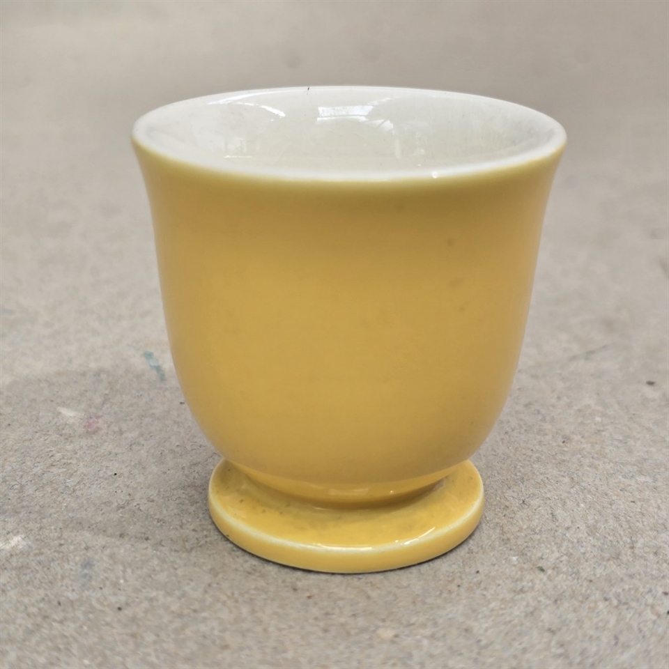 Opdag charmen ved morgenmad med et strejf af retro elegance! Dette indtagende gule æggebæger fra Aluminia er den perfekte tilføjelse til ethvert hjem, der værdsætter skønhed og historie i hverdagen. Æggebægeret, der er fremstillet af porcelæn, præsenterer en levende gul farve, der tilfører et solrigt pift til dit morgenbord.