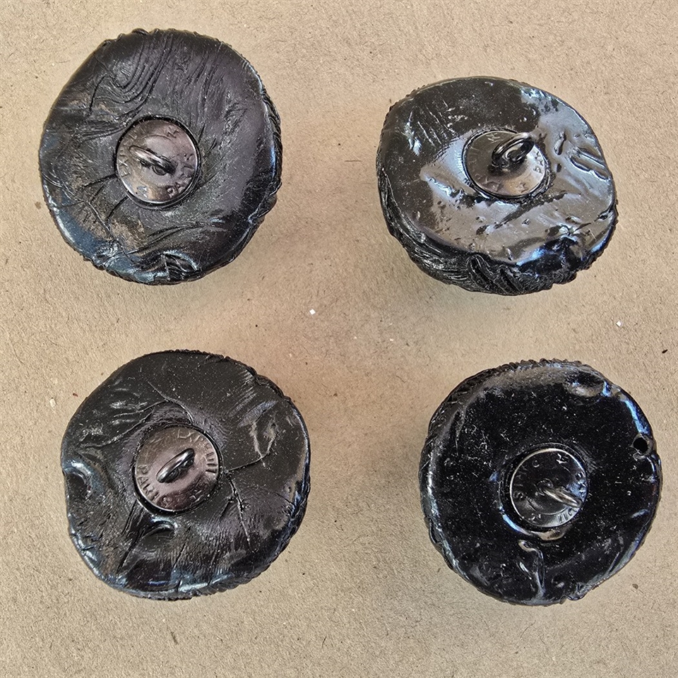 Hver knap er udført i sort kunst materiale og præsenterer et mønster, der tilføjer en sofistikeret detalje til enhver form for beklædning.