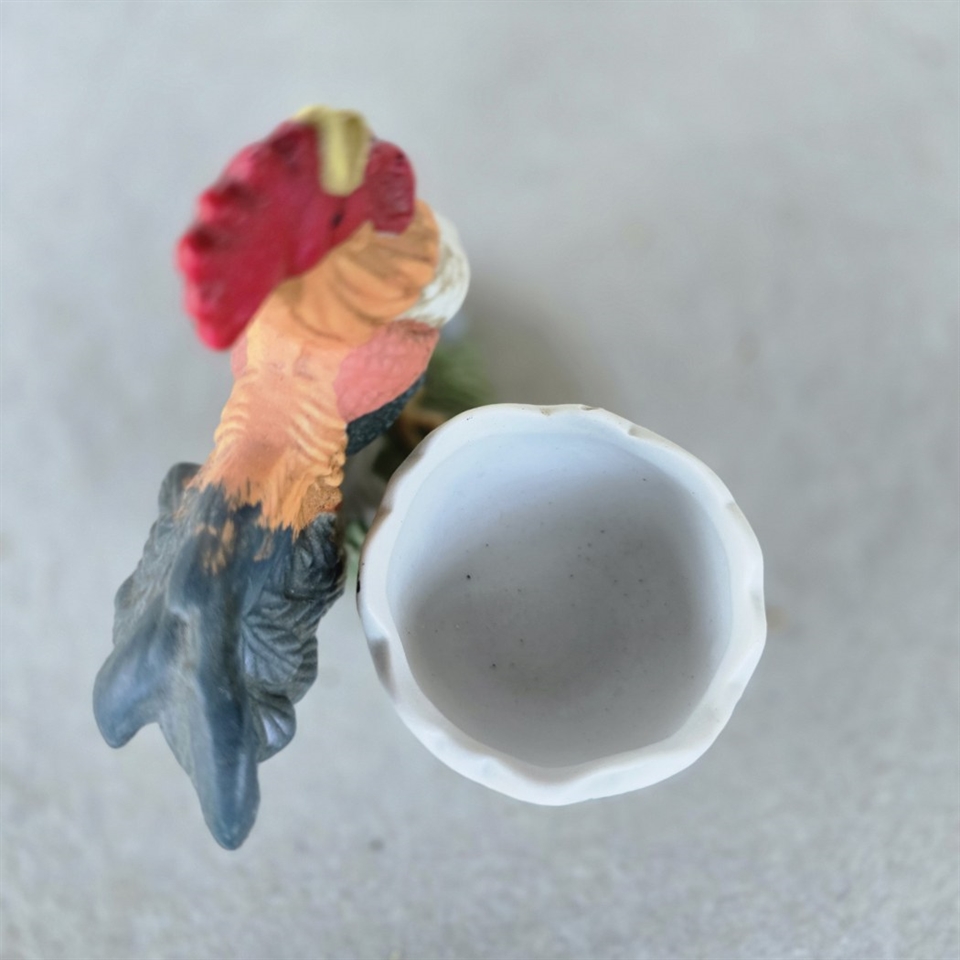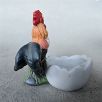 Produktet præsenterer en livlig og detaljerig hane med en imponerende hanekam, der tilføjer et sjovt og unikt touch til dit morgenbord.