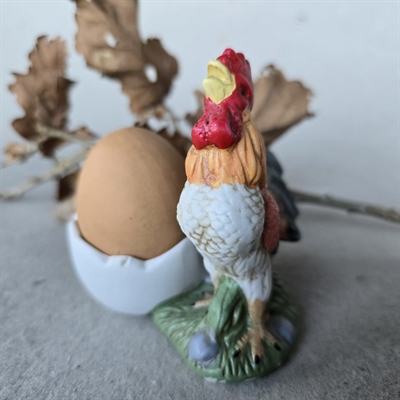 Opgrader din morgenmadsoplevelse med dette charmerende og farverige æggebæger, 'Hane i flotte farver'.