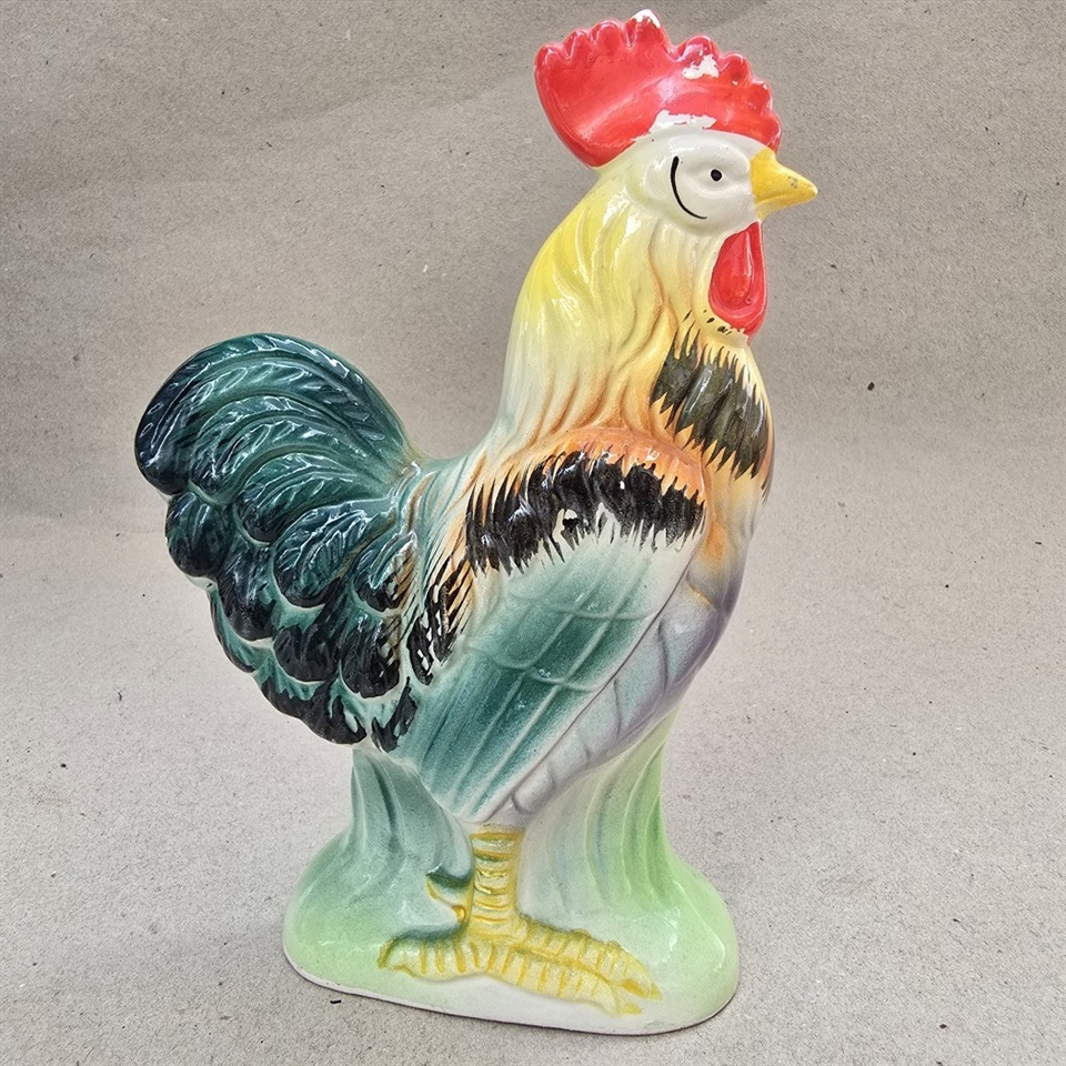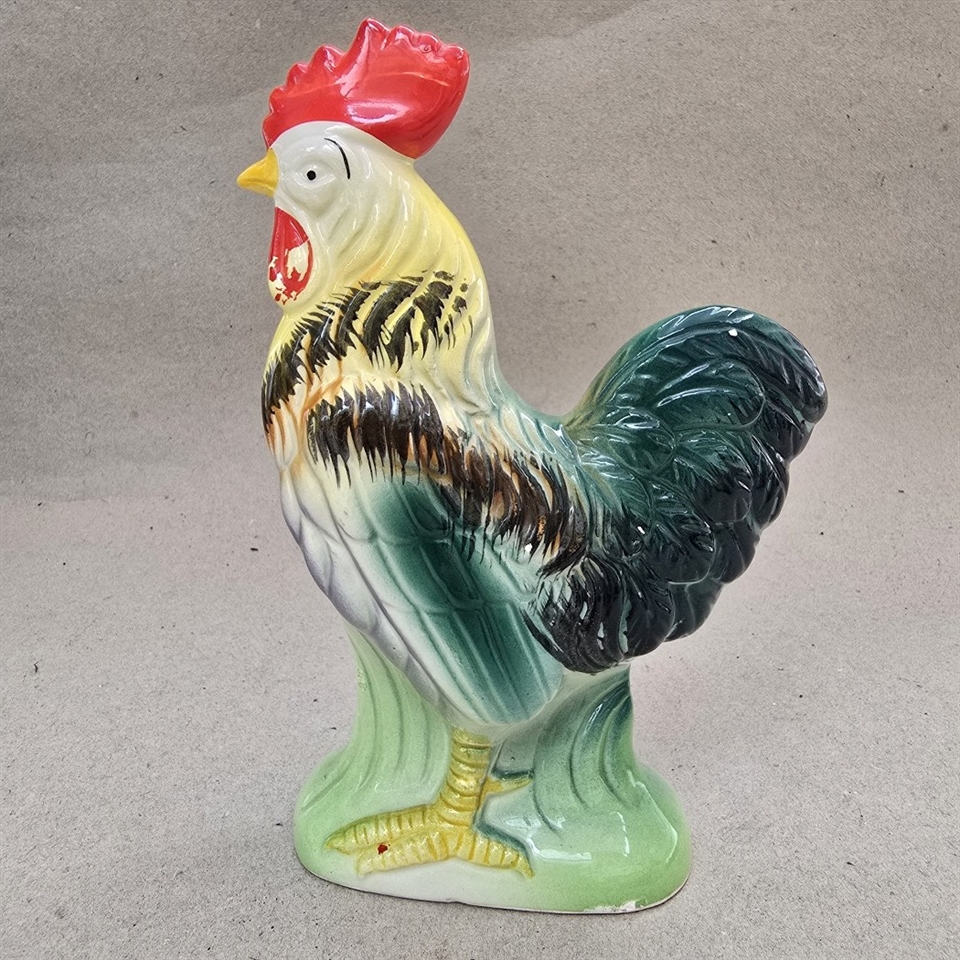Vores 'Hane i flotte farver' er en vintage skønhed, der står imponerende 19,5 cm. høj og er perfekt designet til at fange øjet og hjertet.