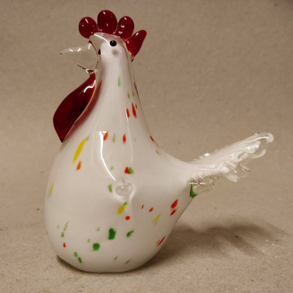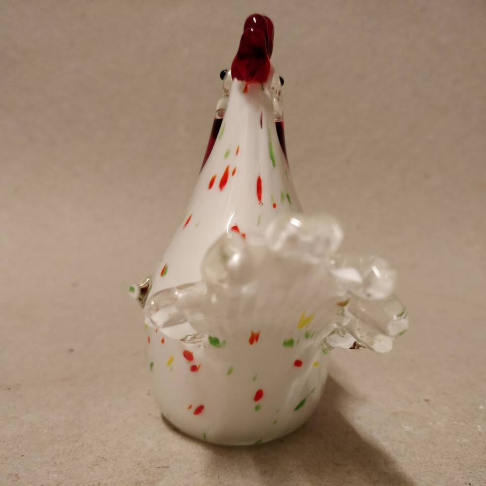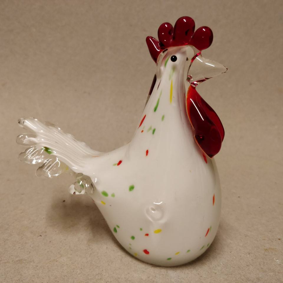 Flot hvid glashane med farvede nister i glasset.