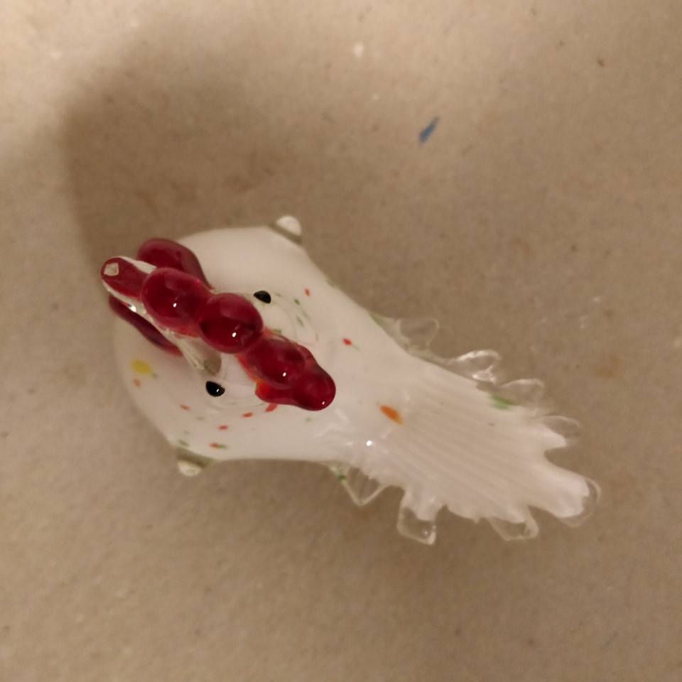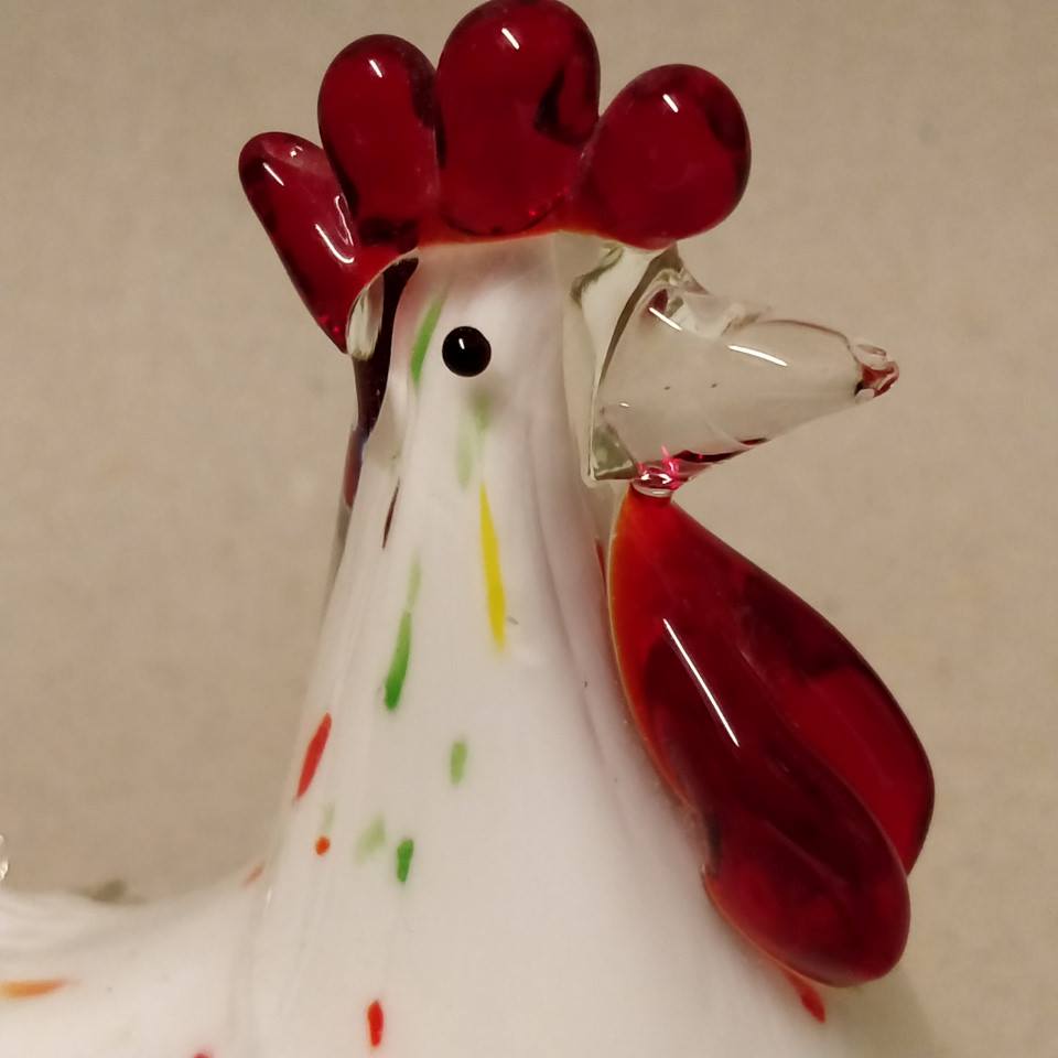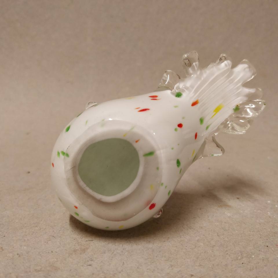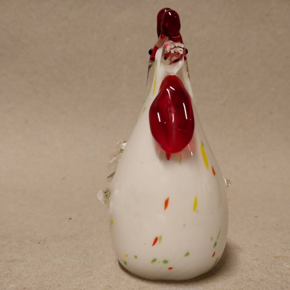 Flot hvid glashane med farvede nister i glasset.