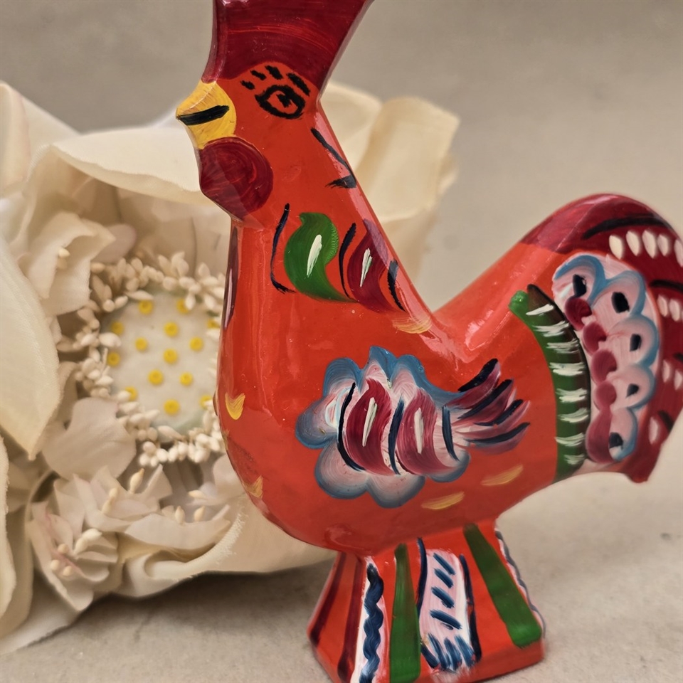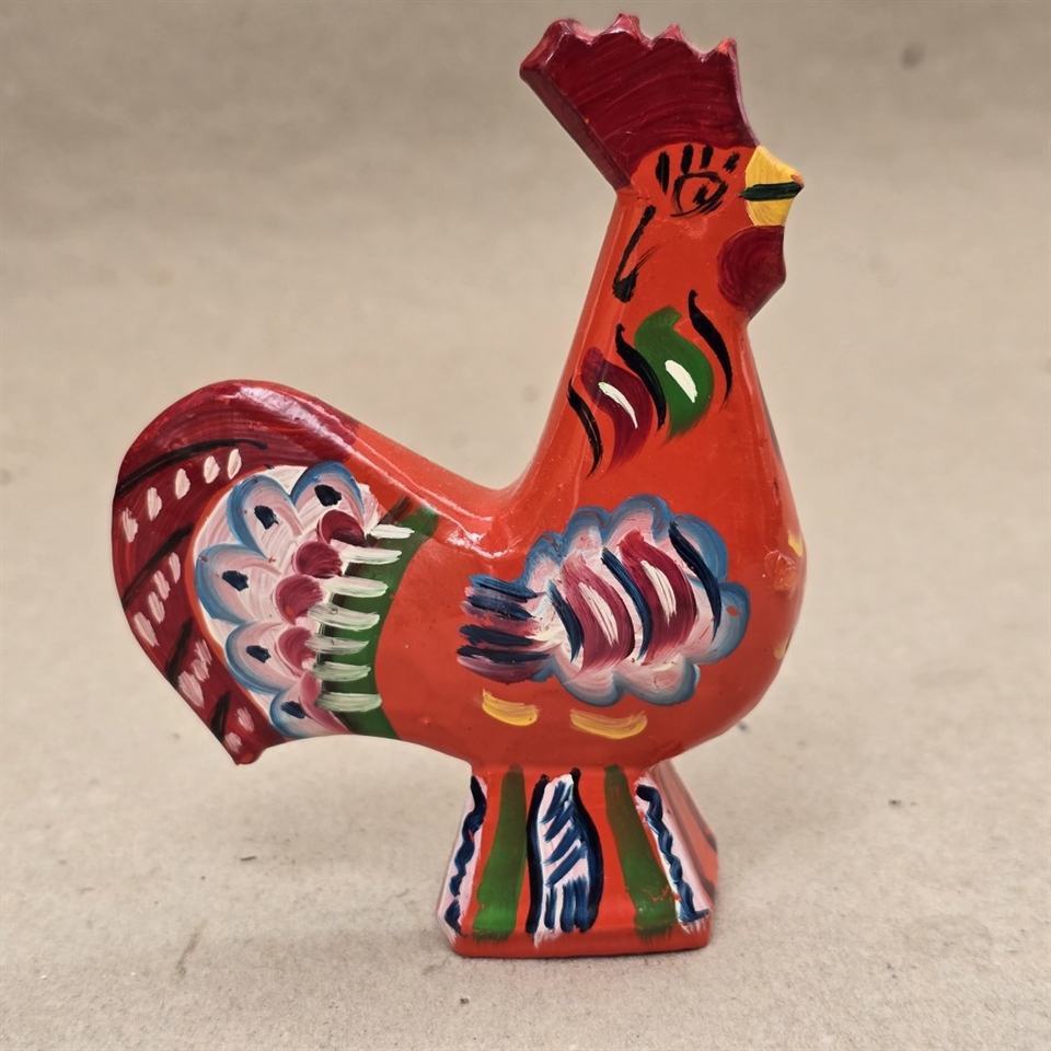 Opdag charmen fra det svenske landskab med vores "Hane orange bemalet vintage Dalahane fra Sverige"!