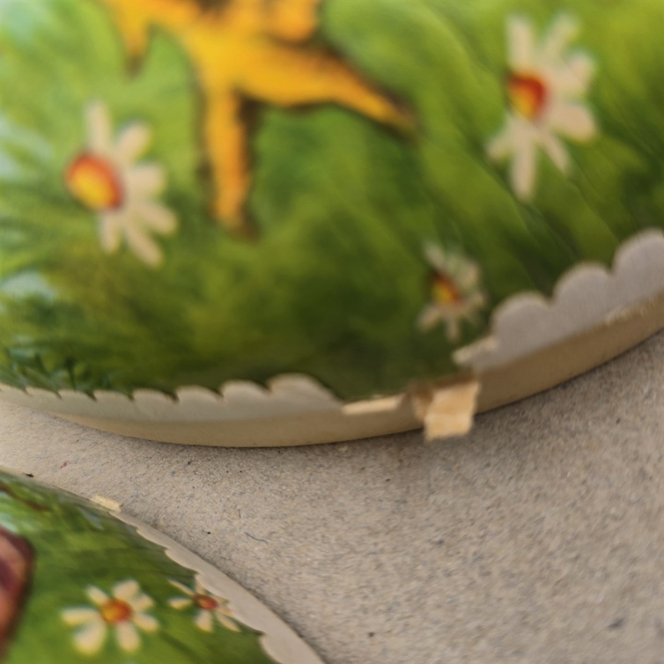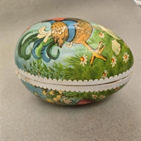 Vores påskeæg er omhyggeligt hånddekoreret med en malerisk scene af en farverig hane og en kær lille kylling, der titter ud fra et æggeskal. Hvert detalje er fint udført med øje for tradition og kvalitet, hvilket gør hvert æg unikt og specielt.