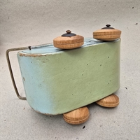 Denne lille gammeldags dukkevogn, der måler 11,8 cm. i højden, er perfekt dimensioneret til at huse yndlingsdukken og sikrer timevis af fantasifuld leg. Kalechen på vognen tilføjer et autentisk touch og hjælper med at skabe en hyggelig og beskyttende atmosfære for dukkerne på deres eventyr rundt i hjemmet eller haven.