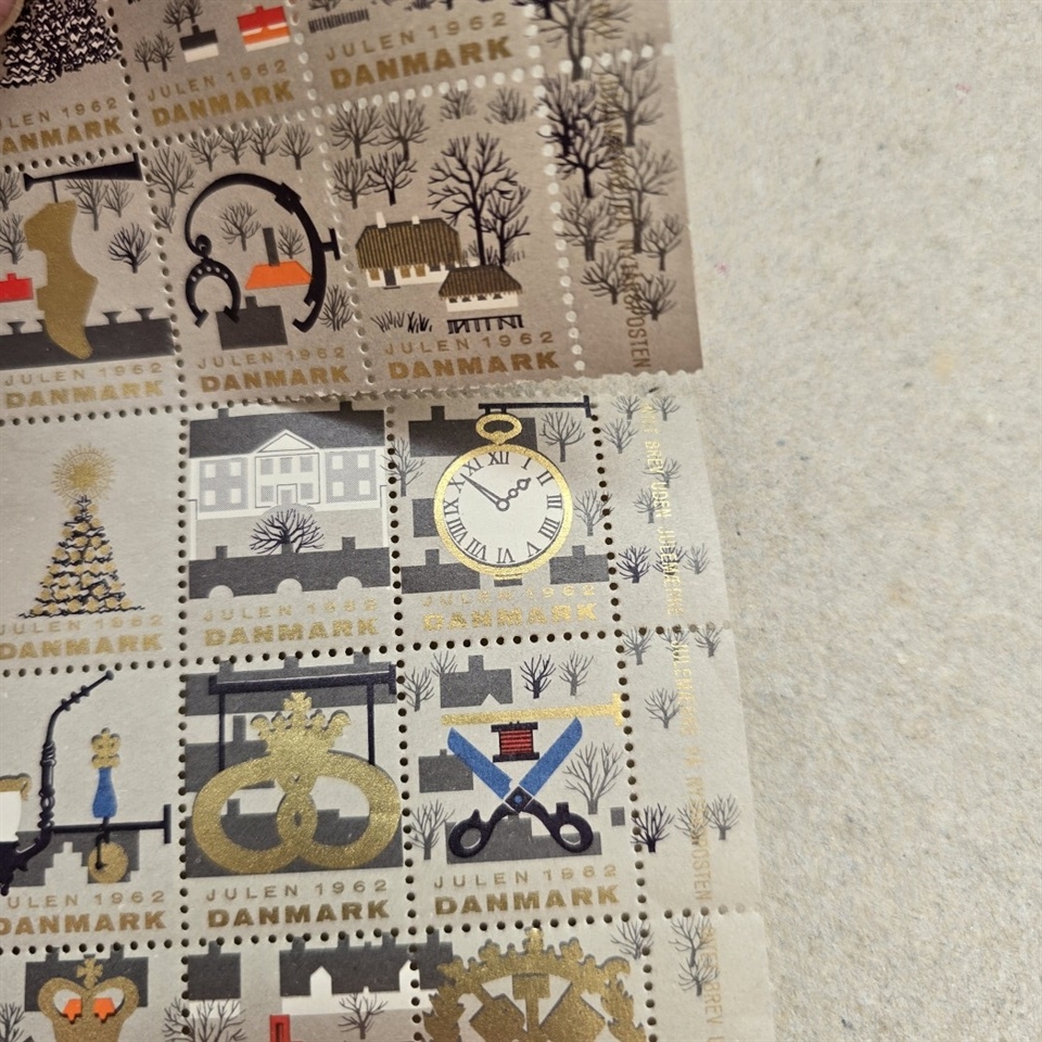 Opdag en ægte skat fra fortiden med vores charmerende 'Helark julemærker med de gamle håndværk vartegn, fra 1962'. Hvert mærke på dette fulde ark er et lille kunstværk, der afspejler de klassiske håndværkstraditioner, som har formet vores kultur og historie.