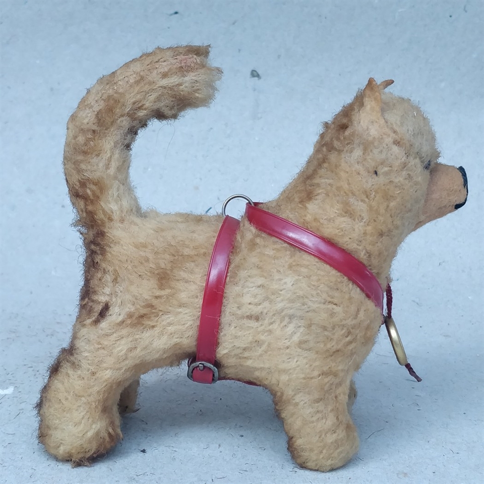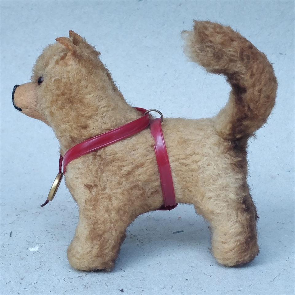 Denne lille kramme hund repræsenterer klassisk legetøj, der aldrig går af mode. Den er ideel som en gave til samlere eller som en kær ven til ethvert barn, der ønsker en trofast ledsager til deres daglige eventyr.