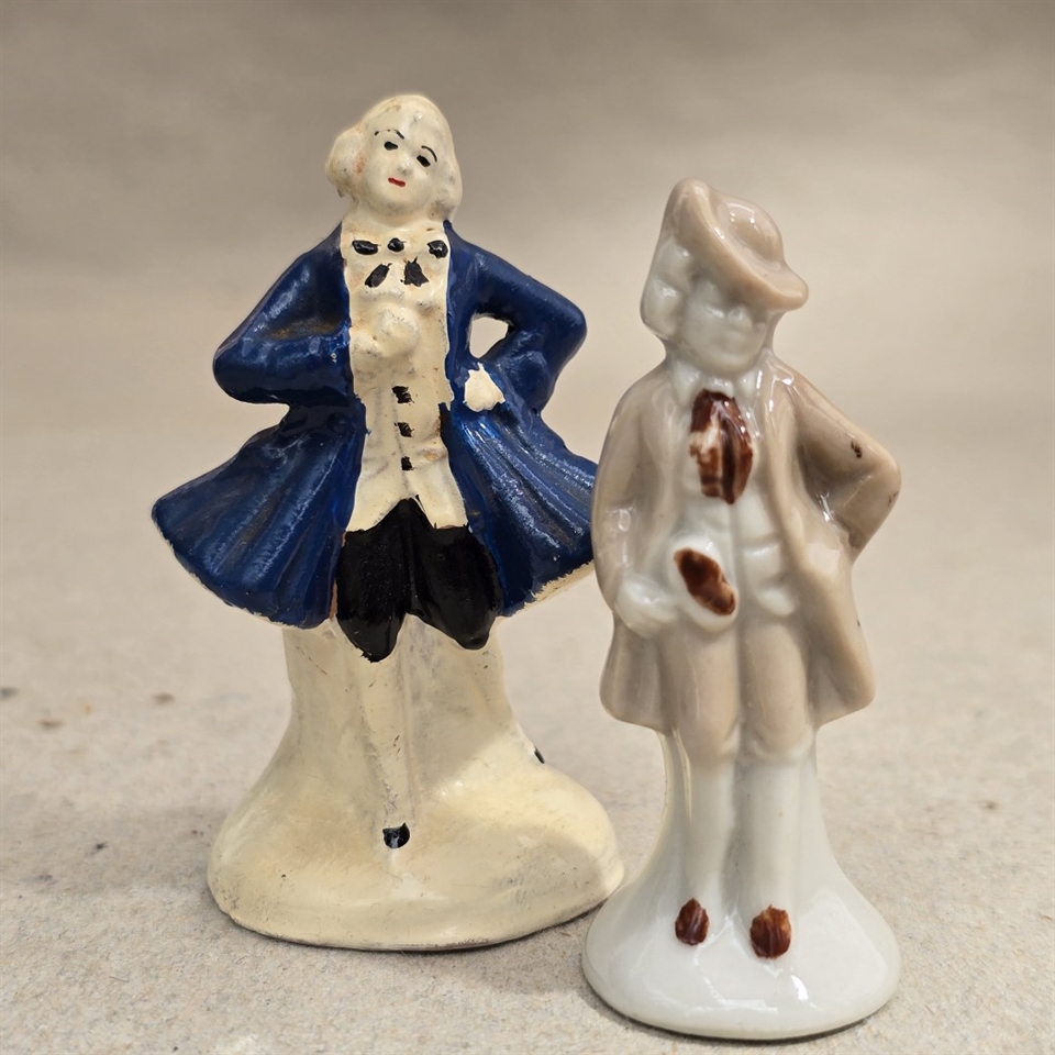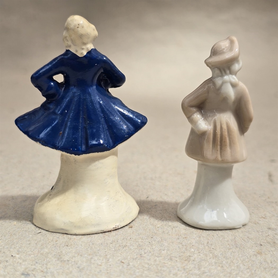Opdag charmen og elegance med vores porcelænsfigurer 'Herrefigurer beige hat og frakke, den anden blå frakke og bukser'. Disse yndefulde figurer bringer et strejf af nostalgi og klasse til ethvert rum.