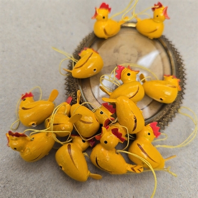 Disse søde høns er 2,7 cm. høje og designet med en øje for detaljer, hvilket gør hver enkelt figur unik. De er ikke blot dekorative, men også et vidnesbyrd om traditionelt håndværk og tidløst design.