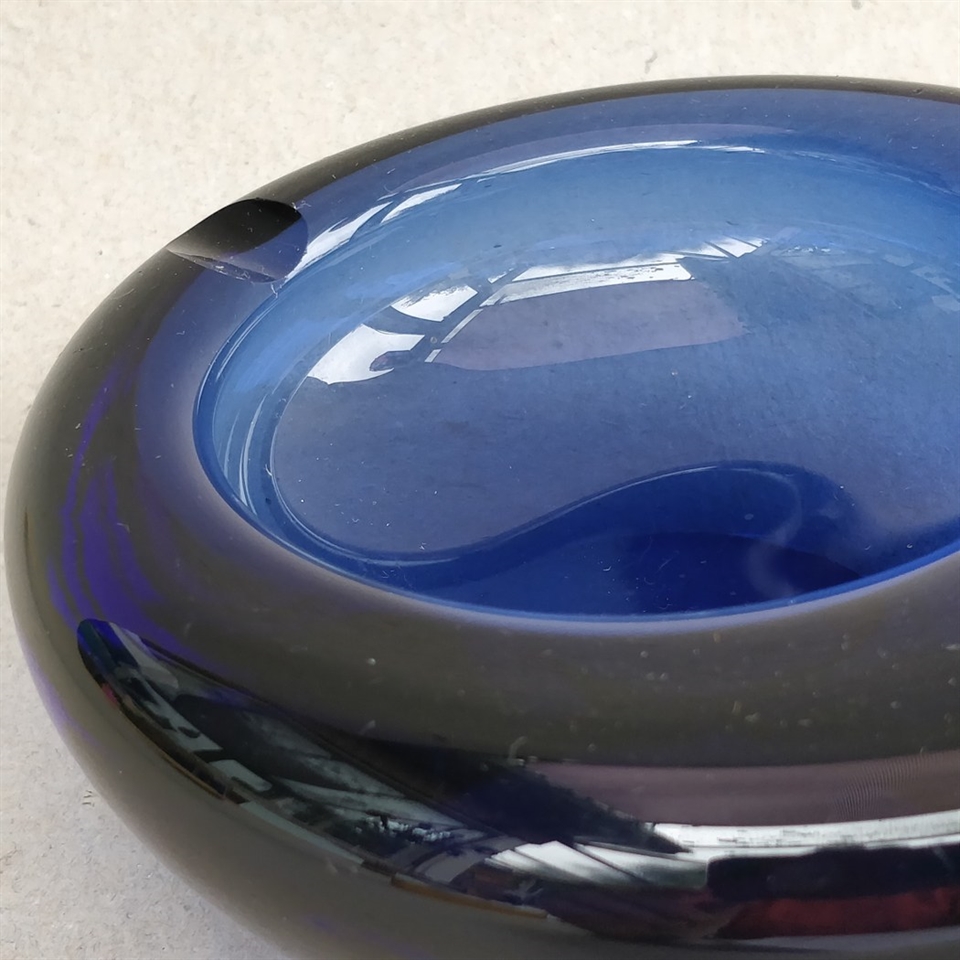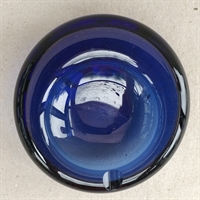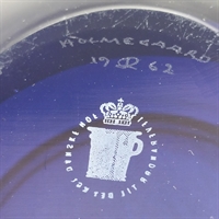 Denne robuste blå glasskål er fremstillet af den anerkendte danske glasproducent Holmegaard i 1962, kendt for deres høj kvalitet og æstetiske design.