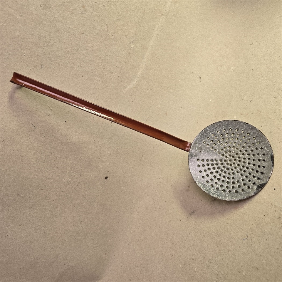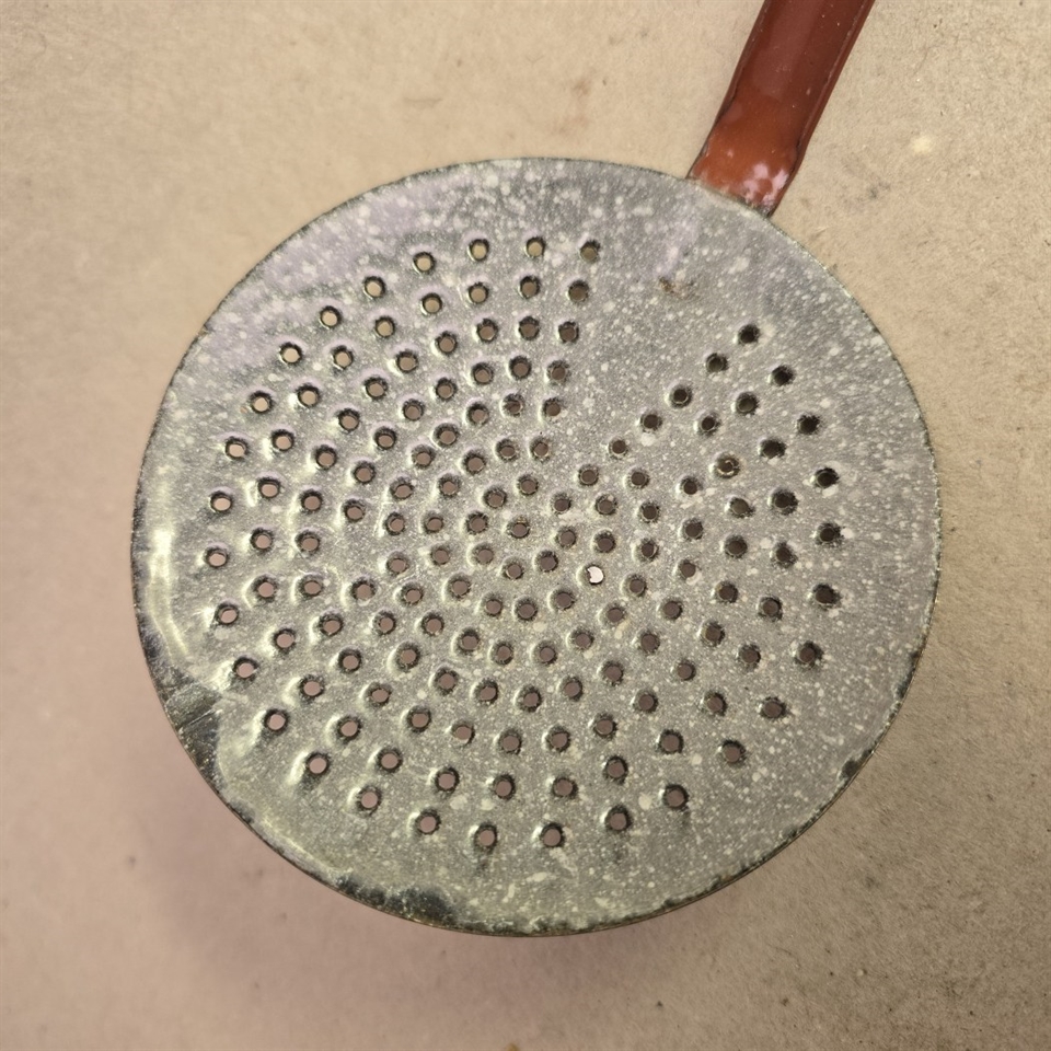 Opdag charmen ved det klassiske svenske køkken med denne smukt emaljerede Hulske i brun og grå. Med et nostalgisk strejf af retro er 'Hulske, brun, grå emaljeret gammel svensk køkkenske' det perfekte tilbehør til enhver køkkenentusiast, der værdsætter tidløst design og funktionalitet.
