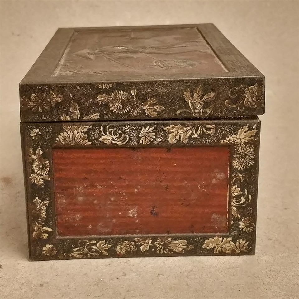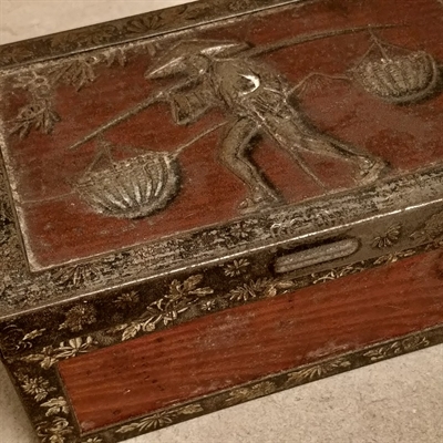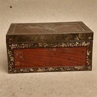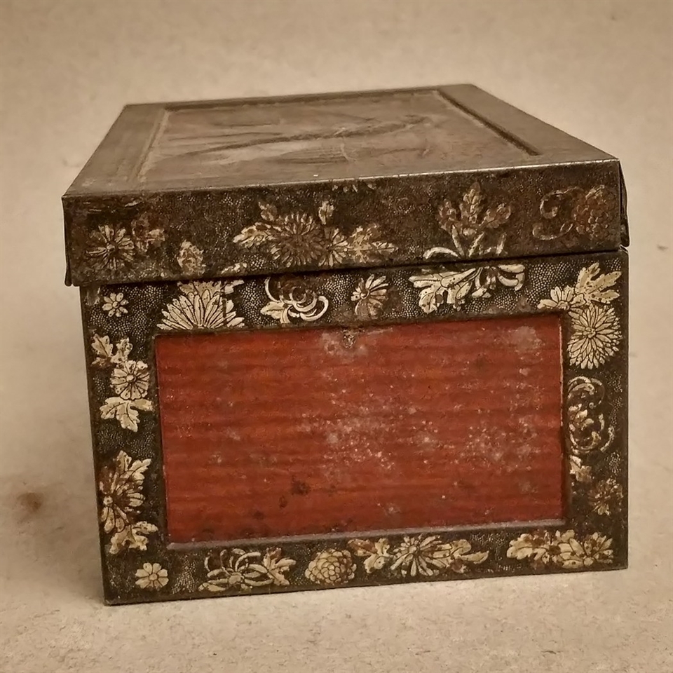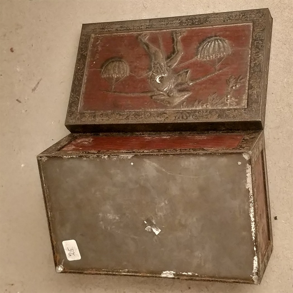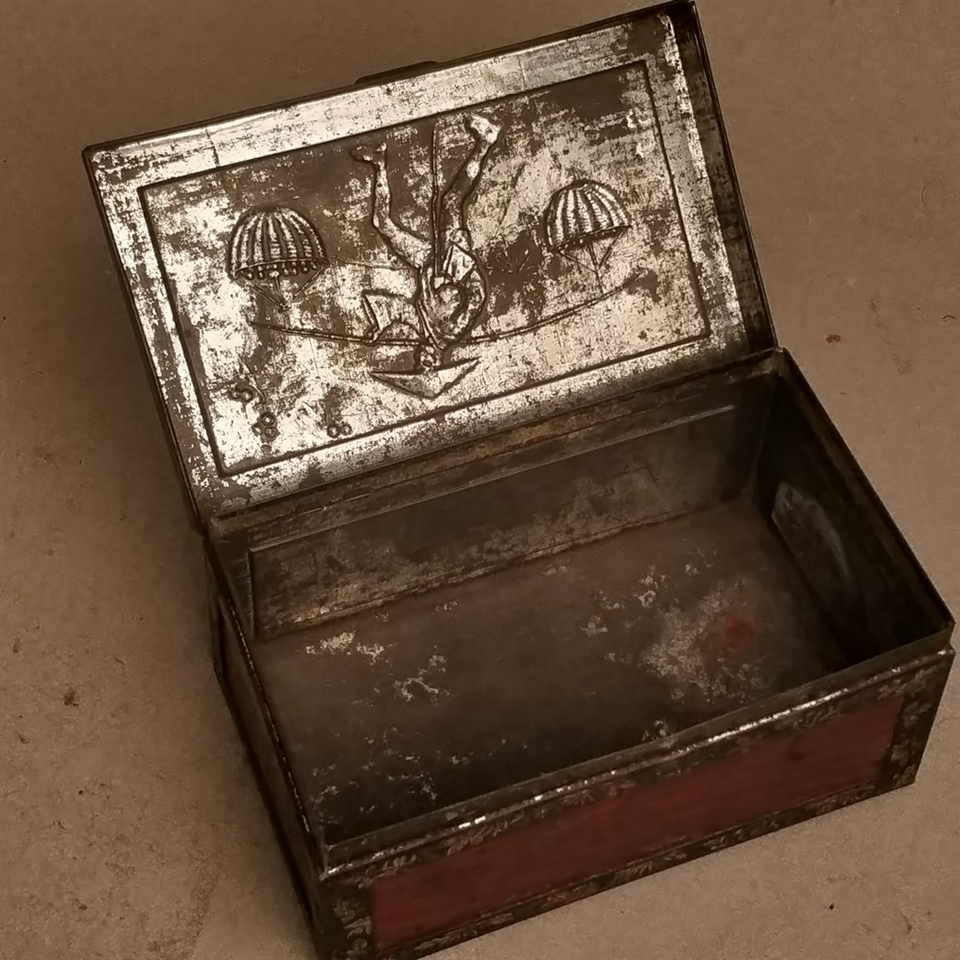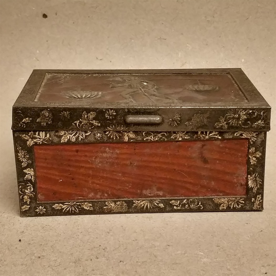 Denne metalæske er ikke kun et unikt samlerobjekt, men også et praktisk valg til opbevaring af små genstande, der tilføjer en vintage flair til enhver indretning.