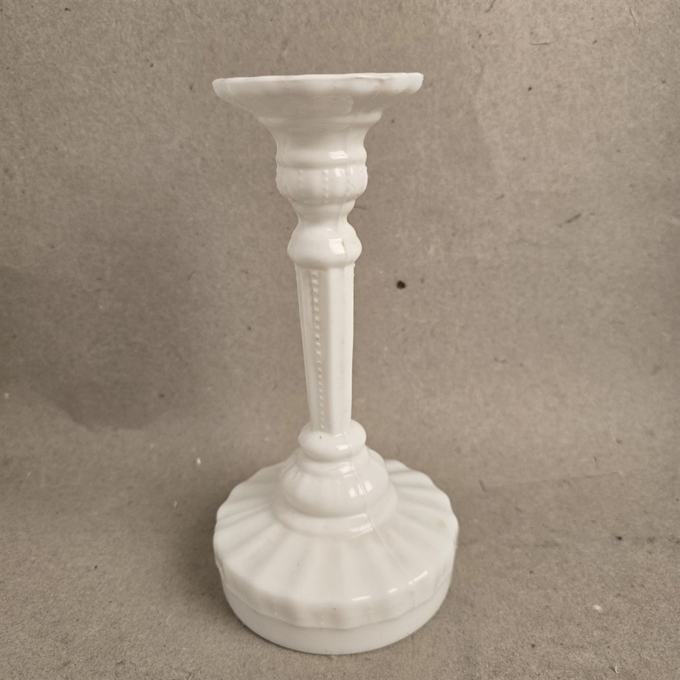 Oplev tidløs elegance med vores "Hvid gammel lysestage i presset glas."
