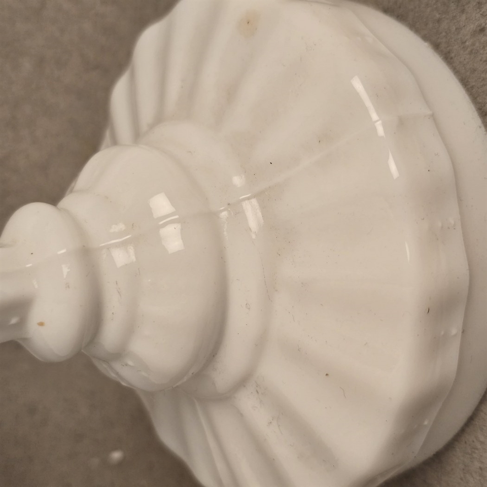 Fremstillet af presset glas, fremstår denne lysestage i en strålende hvid farve, der tilføjer et strejf af renhed og fred til din indretning.
