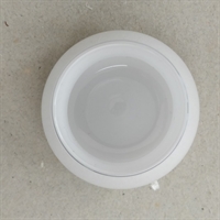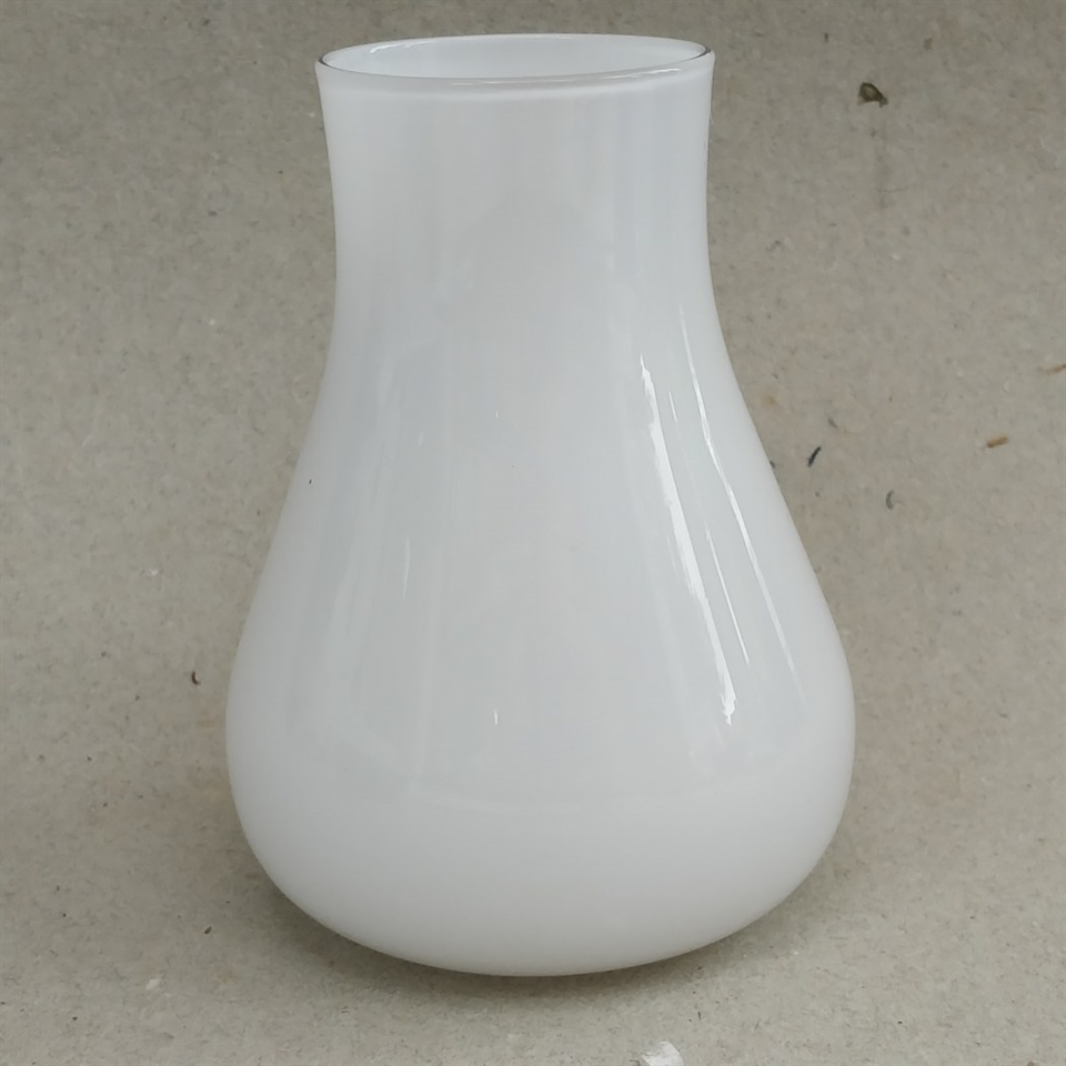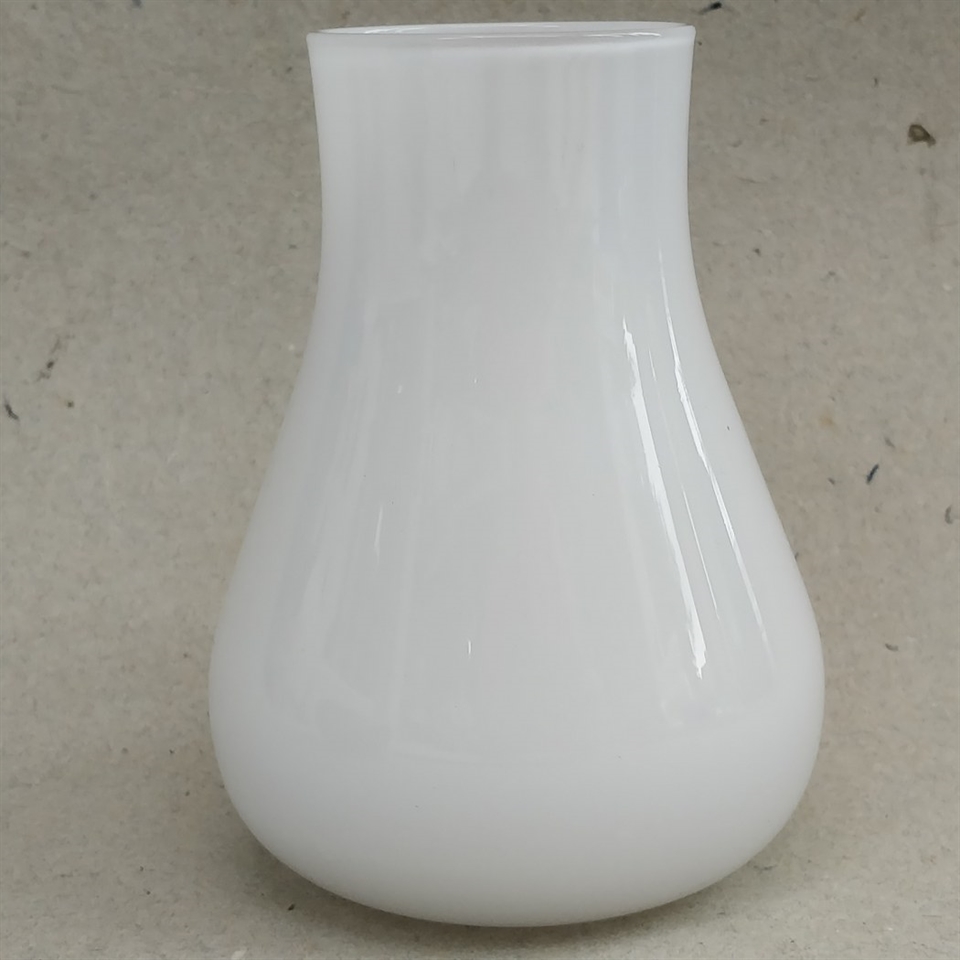 Med en højde på 11,2 cm. og en let buttet form forneden, kombinerer denne klassiske hvide glasvase tidløs stil med praktisk funktionalitet.