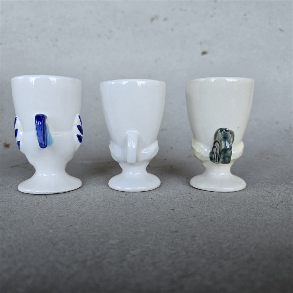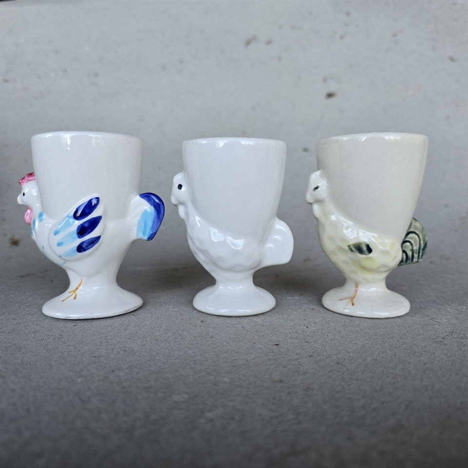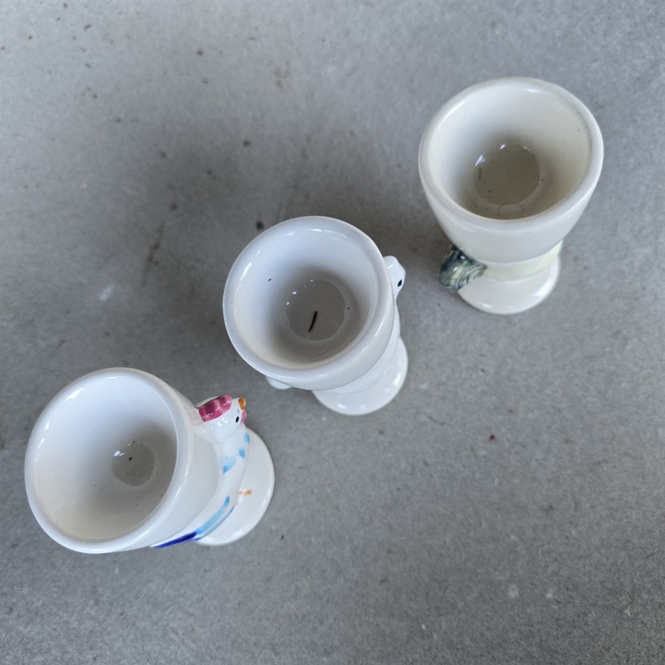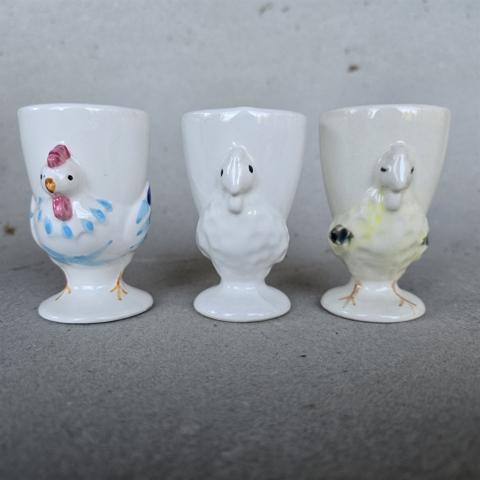 Med en højde på 8,7 cm. passer de perfekt til standardstørrelse æg, og deres vintage stil gør dem ideelle til påskebordet eller som en charmerende tilføjelse til hverdagsmorgenmaden.