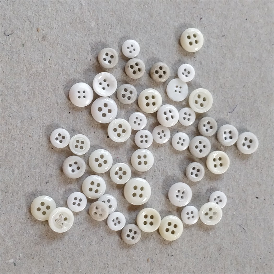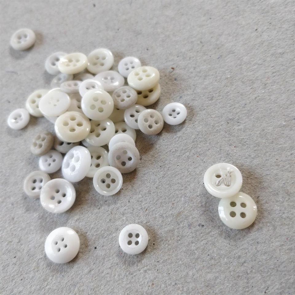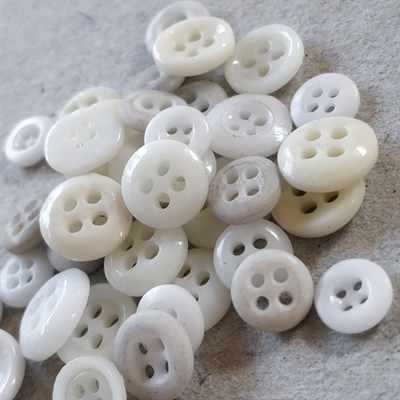Hver knap er omhyggeligt udvalgt og varierer i størrelse fra 8 til 13 mm. i diameter, perfekte til at tilføje et unikt præg på dine skjorter eller andre beklædningsgenstande.