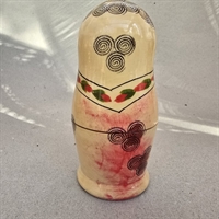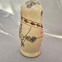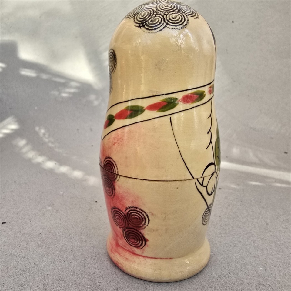Opdag skønheden og charmen i denne unikke 'Hvidlig gammel babushka dukke, håndmalet' – en ægte perle for samlere og entusiaster af traditionel russisk kunsthåndværk.
