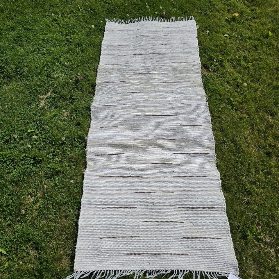 Vores gammel svenske løber er håndvævet med kærlighed og omtanke, og kombinationen af de hvidt-beige nuancer med charmerende brune islet-mønstre giver det et tidløst udtryk, der nemt blander sig med både moderne og traditionel indretning.