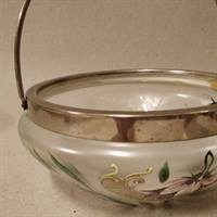 Metalbakke fra før år 1900, med maleri på.