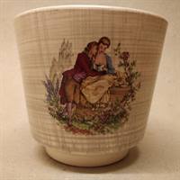 Kiksespand i majolika porcelæn, flot dekoreret i army, rosa og creme.