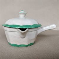 Quistgaard støbejerns hjerte pande. Grøn, hvid emalje.