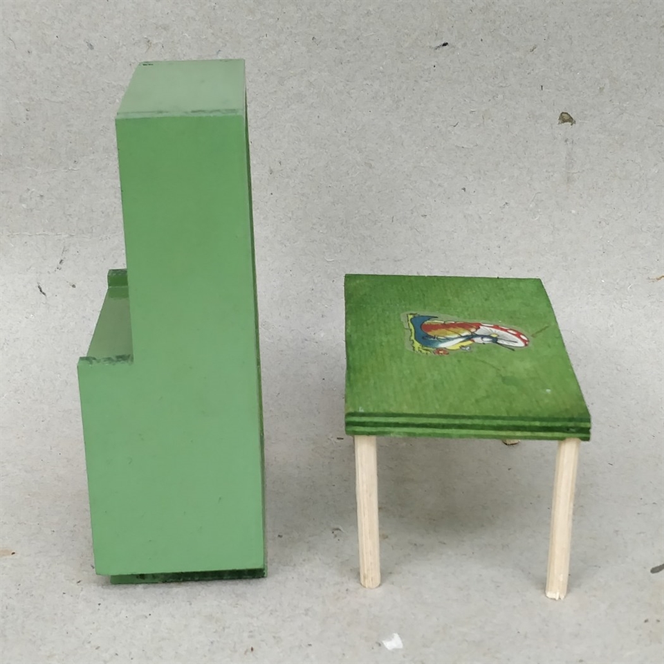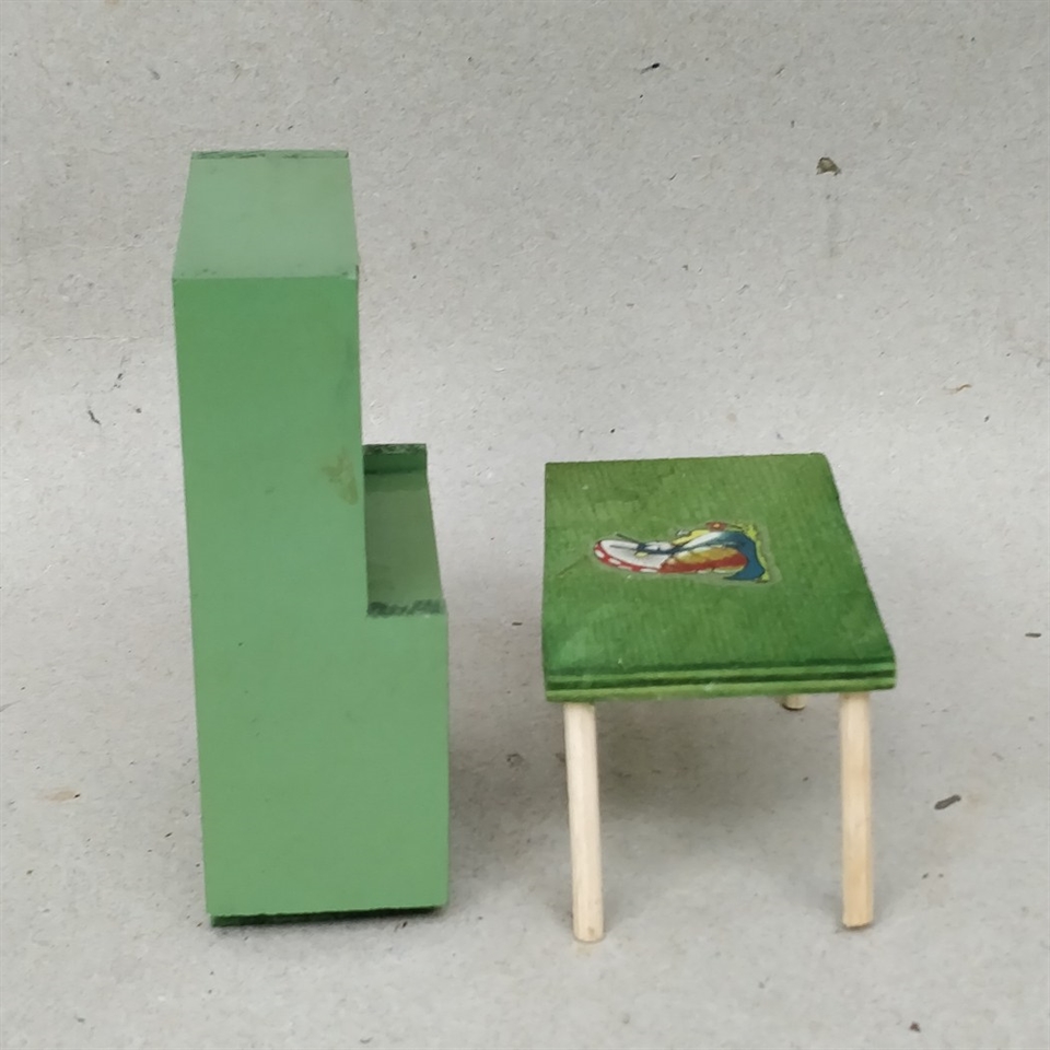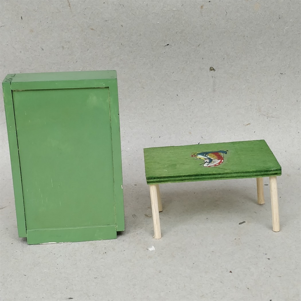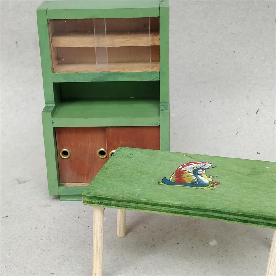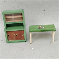 Tilføj dette smukt designede og håndlavede danske møbelsæt til din samling og bring historie og charme ind i dit dukkehusmiljø.