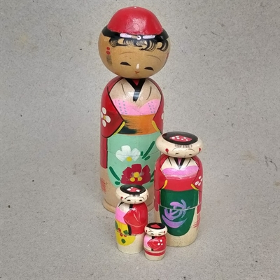 Opdag charmen og håndværket i disse "Japanske bemalede trædukker, retro legetøj".